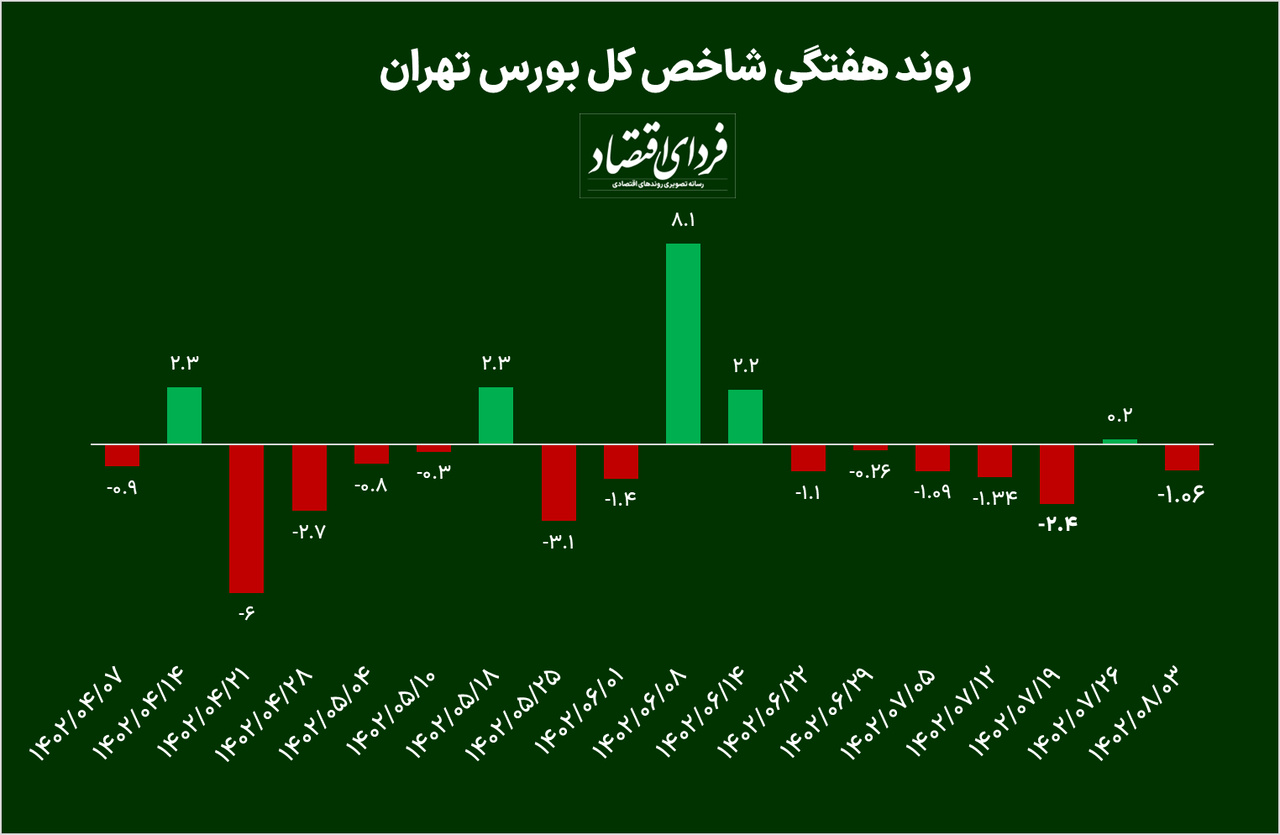 فردای اقتصاد: شاخص کل بورس اوراق بهادار تهران در معاملات هفتهای که گذشت افت بیش از ۲۱ هزار واحدی را متحمل شد و نهایتا در محدوده ۲ میلیون و ۲ هزار واحدی توانست تثبیت شود. در شرایطی که برخی از کارشناسان بازار سرمایه انتظار اثرگذاری گزارشهای مطلوب ۶ ماهه شرکتها را در روند دادوستدها داشتند اما معاملهگران بورسی وزن چندانی به اطلاعاتی که در خروجی سامانه کدال قرار گرفت ندادند و عمدتا در صفوف سنگین فروش اقدام به شناسایی سود کردند. همزمان با کاهش نزول ۱.۰۶ درصدی دماسنج اصلی بازار شاخص کل هموزن نیز با ریزشی معادل ۰.۹ درصد مواجه شد. ارزش معاملات خرد (سهام و حق تقدم) در مقیاس میانگین هفتگی نیز از رقم ۳ هزار و ۱۷۶ میلیارد تومانی حکایت دارد. از دلایل تثبیت ارزش معاملات در چنین سطحی میتوان به تعدد ریسکهای معاملاتی از جمله سایه ریسکهای سیستماتیک و عدم پیشبینیپذیری اقتصاد اشاره کرد.