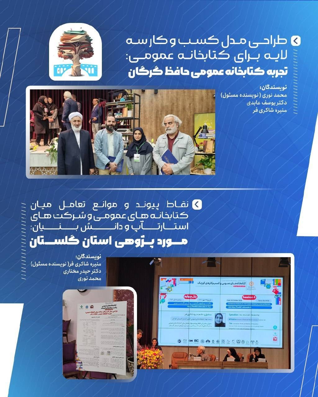 در این همایش مقاله کتابداران گلستانی منیره شاکری فر ؛ محمد نوری و دکتر حیدر مختاری با عنوان : "نقاط پیوند و موانع تعامل میان کتابخانه های عمومی و کسب و کارهای کوچک و دانش بنیان؛ مورد پژوهی استان گلستان از میان ۱۱۵ مقاله داخلی و خارجی ارسال شده به دبیرخانه همایش مورد پذیرش جهت ارائه سخنرانی قرار گرفت.
