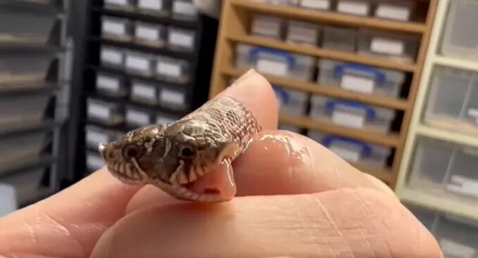 در رویدادی نادر یک فروشگاه حیوانات در شهر اکستر در جنوب انگلیس یک مار هاگنوز غربی با دو سر از تخم بیرون آمد.