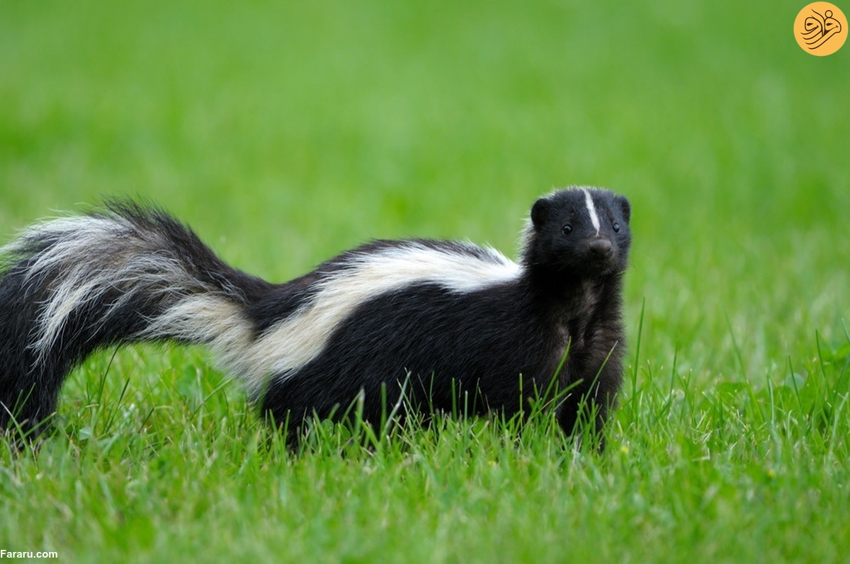 یک گندراسو که هدف حمله یک گرگ قرار گرفته بود با عکس‌العمل به موقع این حیوان درنده را زمین‌گیر کرد. گندراسو یا راسوی آمریکایی بیشتر به خاطر مایع بسیار بدبویی که می‌تواند از خود به بیرون بپاشد مشهور شده است. اگر به گندراسو حمله شود برای دفاع از خود پایش را محکم به زمین می‌کوبد و سپس روی دو پا بلند می‌شود و مایع بسیار بدبویی را از غده‌هایی که زیر دمش قرار دارند به بیرون و به طرف دشمن می‌پاشد. بیشتر جانوران کاری به کار این جانور ندارند. راسوی آمریکایی را به خاطر پوست گران‌قیمتش در مزرعه‌های ویژه‌ای پرورش می‌دهند و برای رها شدن از بوی زننده، غده‌های مخصوص او را در زمان نوزادی از بدنش بیرون می‌آورند.