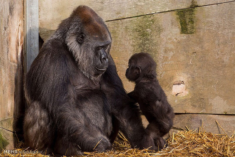 گوریل مادری که با دیدن کودک خردسال در آغوش مادر ذوق زده شد با نشان دادن کودک خود به او حس مادری اش را ثابت کرد.