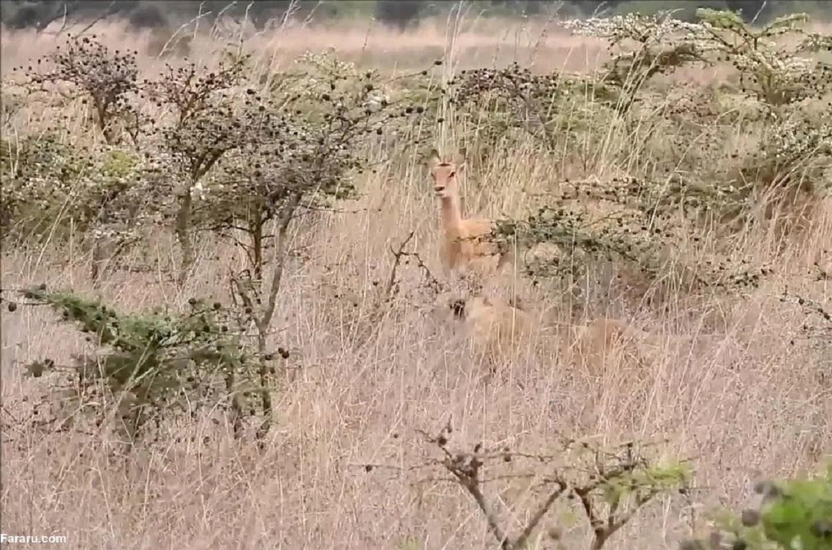 (ویدئو) ایمپالا درست به طرف کمین شیر رفت و شکار شد
