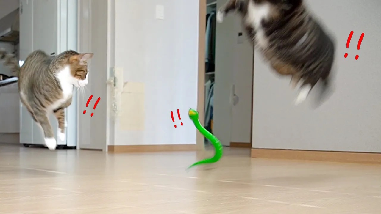 (ویدئو) واکنش خنده دار گربه ها به دیدن مار پلاستیکی متحرک