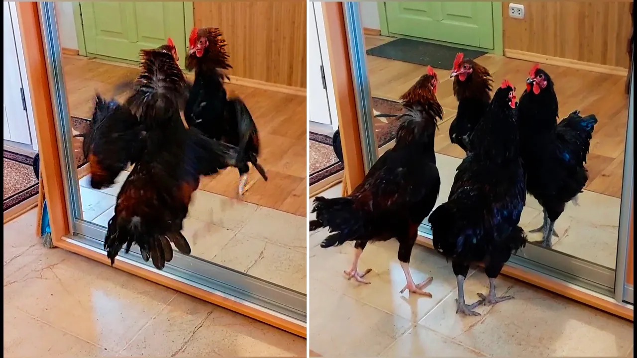 حیوانات در مواجهه با آینه واکنشی های بامزه و جالبی نشان می دهند که در اغلب موارد با استقبال کاربران روبرو می شود. در این ویدئو نیز روبرو شدن بامزه مرغ و خروس ها با آینه را می بینید که آن ها را در حال دعوا کردن با خودشان نشان می دهد.