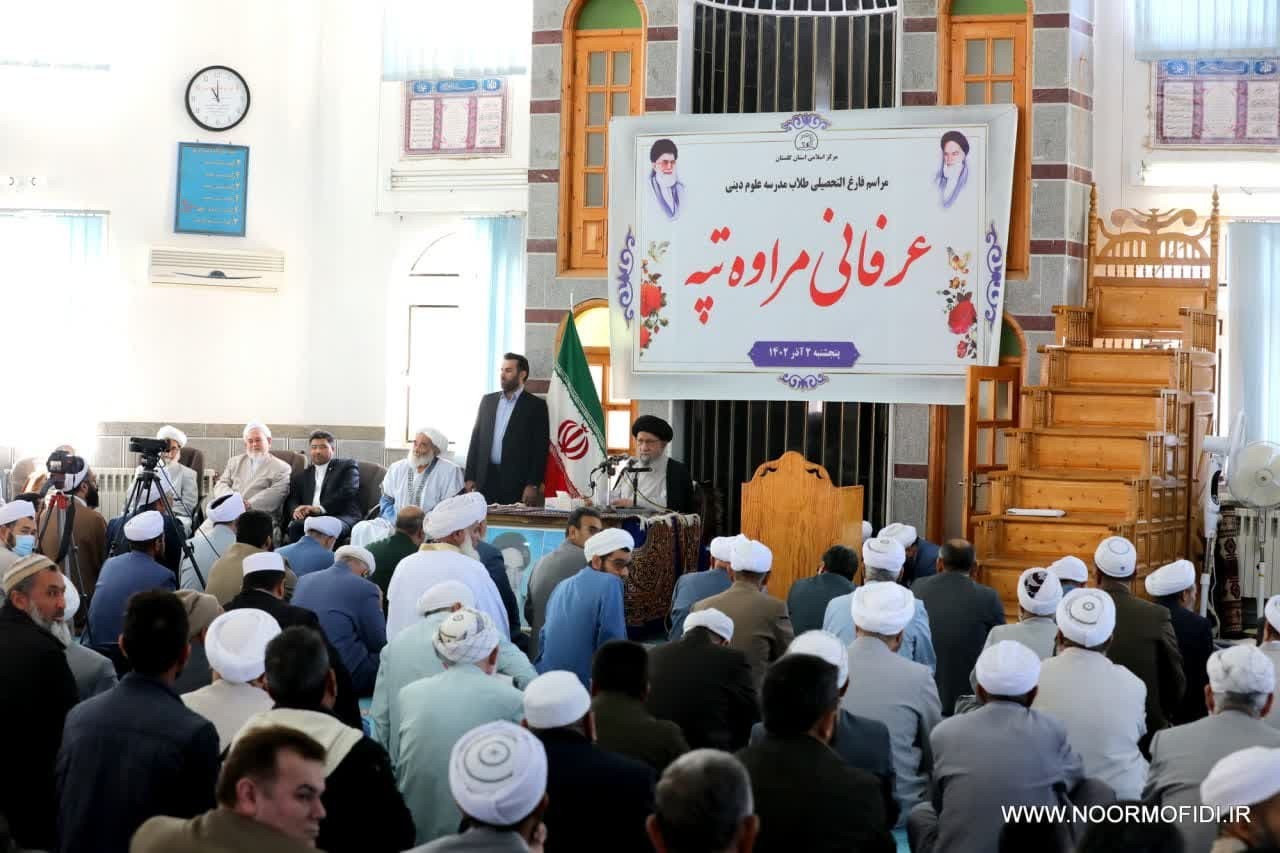 مراسم فارغ التحصیلی و عمامه گذاری جمعی از طلاب اهل سنت مدرسه علوم دینی عرفانی مراوه_تپه با حضور و سخنرانی حضرت آیت الله نورمفیدی نماینده مقام معظم رهبری در استان گلستان و امام جمعه گرگان و جمعی از علما و روحانیون و مسئولین پیش در شهرستان مراوه تپه برگزار شد.