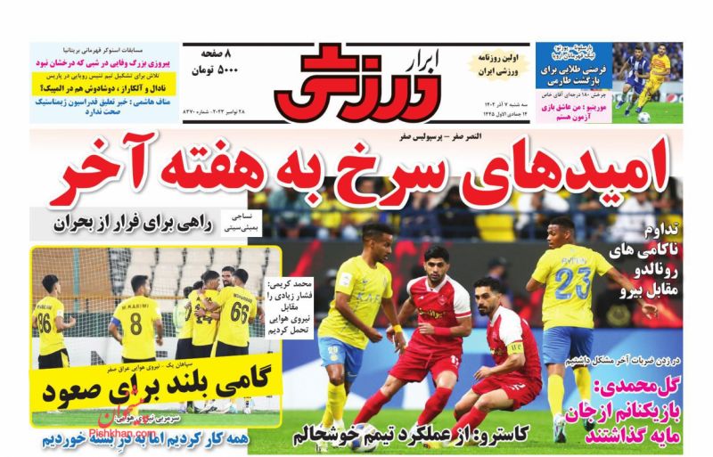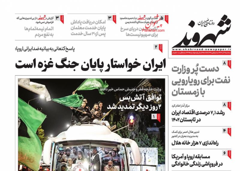 کد: 270946 | 07 آذر 1402 ساعت 06:41 صفحه نخست روزنامههای امروز سه شنبه 7 آذر 1402 صفحه نخست روزنامههای امروز سه شنبه 7 آذر 1402 روزنامه های سراسری مطبوعات کشور روزنامه اشتراک گذاری گزارش خطا × اشتراک گذاری مطلب: صفحه نخست روزنامههای امروز سه شنبه 7 آذر 1402 فیسبوک اینستاگرام تلگرام ایکس (توییتر) ایتا بله روبیکا × گزارش خطا برای گزارش خطا با پست الکترونیکی: ruydadiran[at]gmail.com در ارتباط باشید