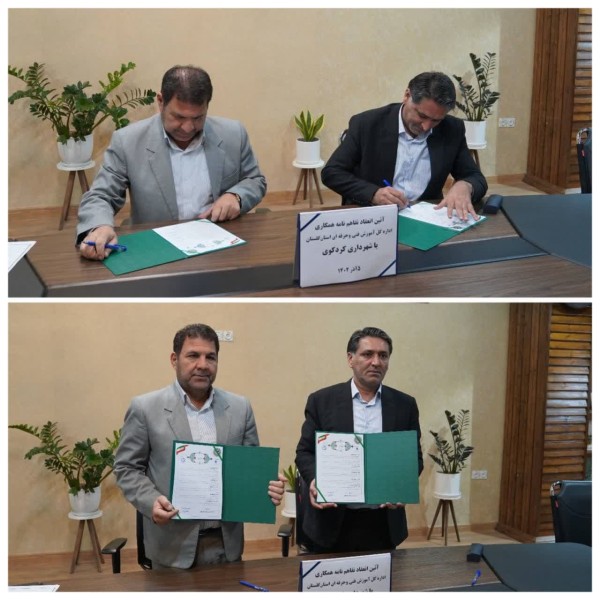 آئین انعقاد تفاهم نامه همکاری اداره کل آموزش فنی و حرفه ای استان گلستان با شهرداری کردکوی، با حضور حمزه کرایلو مدیرکل آموزش فنی و حرفه ای استان گلستان و جرجانی شهردار کردکوی، روسای مراکز آموزش فنی و حرفه ای کردکوی برگزار شد.