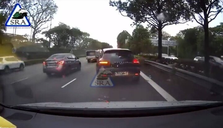 در این ویدئو که توسط دوربین تعبیه شده روی داشبورد یک خودرو ضبط شده پورشه را نشان می‌دهد که با راهنما زدن اقدام به تغییر لاین می‌کند اما یک موتور با دو سرنشین از راه رسیده و پس از برخورد به این خودرو سرنگون می‌شوند.