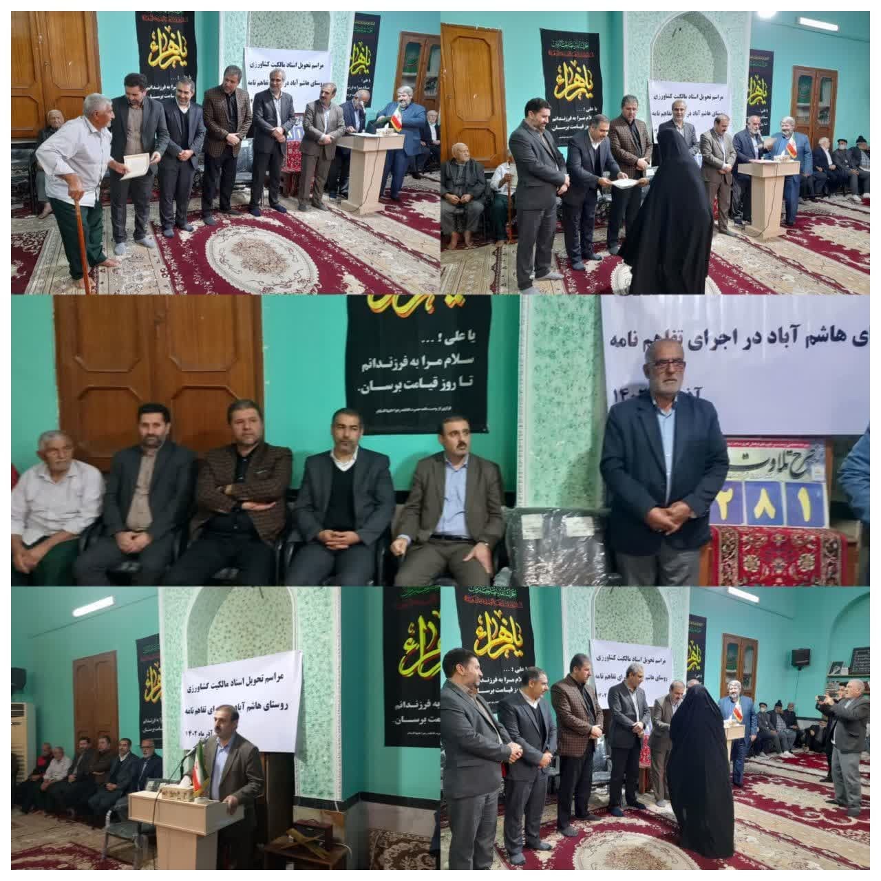 برگزاری مراسم تحویل اسناد مالکیت کاداستری اراضی کشاورزی روستای هاشم آباد شهرستان گرگان