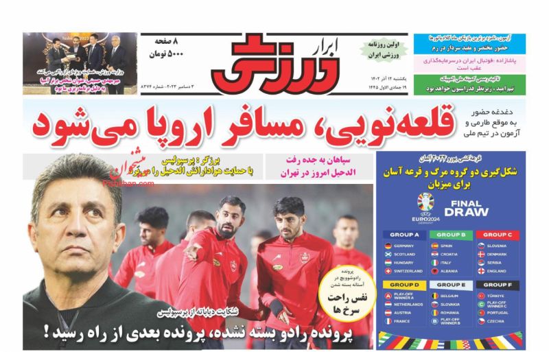 کد: 272849 | 12 آذر 1402 ساعت 06:48 صفحه نخست روزنامههای امروز یکشنبه 12 آذر 1402 صفحه نخست روزنامههای امروز یکشنبه 12 آذر 1402 روزنامه های سراسری مطبوعات کشور روزنامه اشتراک گذاری گزارش خطا × اشتراک گذاری مطلب: صفحه نخست روزنامههای امروز یکشنبه 12 آذر 1402 فیسبوک اینستاگرام تلگرام ایکس (توییتر) ایتا بله روبیکا × گزارش خطا برای گزارش خطا با پست الکترونیکی: ruydadiran[at]gmail.com در ارتباط باشید
