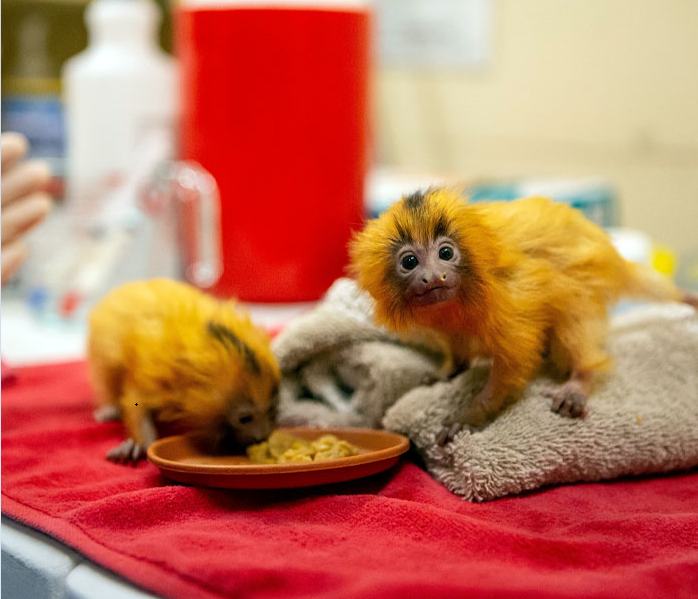 سوژههای بامزه این عکس درحقیقت دوقلوهایی از خانواده تامارین هستند. این میمونهای کوچک از گونه Golden Lion Tamarin به حساب میآیند و بومی جنگلهای ساحلی اقیانوس اطلس هستند.