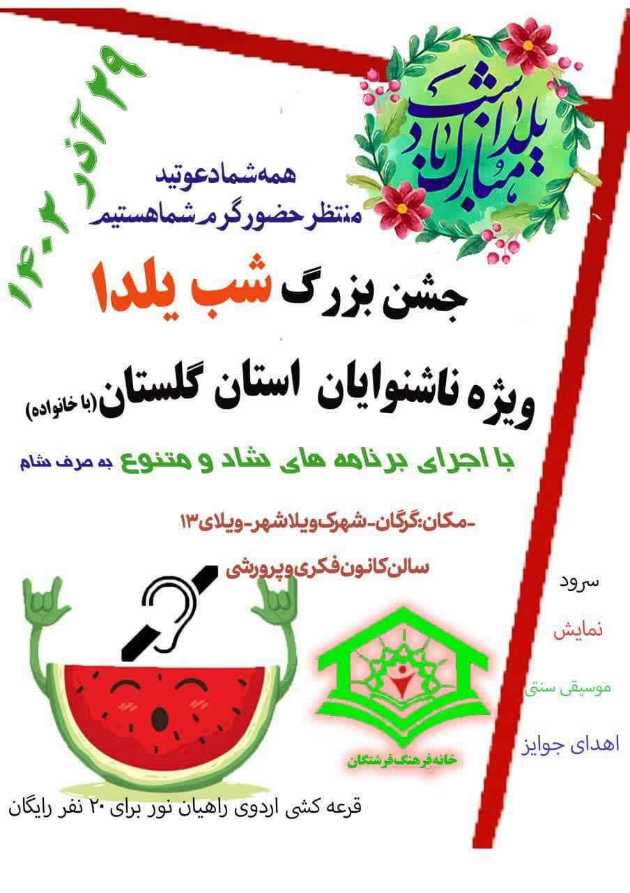 اشتراک گذاری مطلب: جشن بزرگ " یلدا " ویژه ناشنوایان برگزار میشود