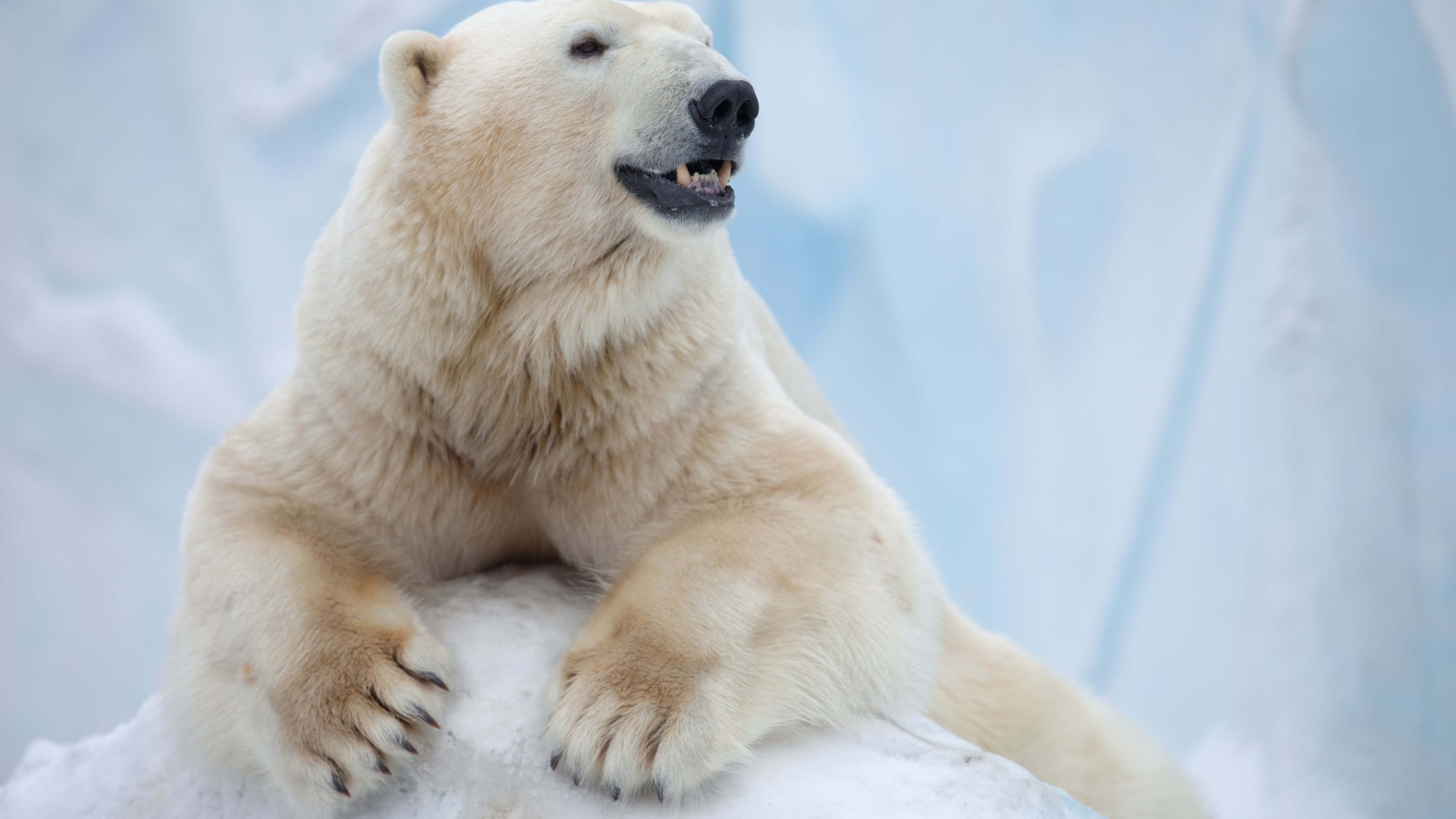 (ویدیو) بازیگوشی بامزه خرس سفید قطبی در آب یخ زده