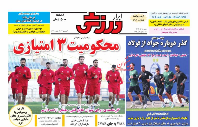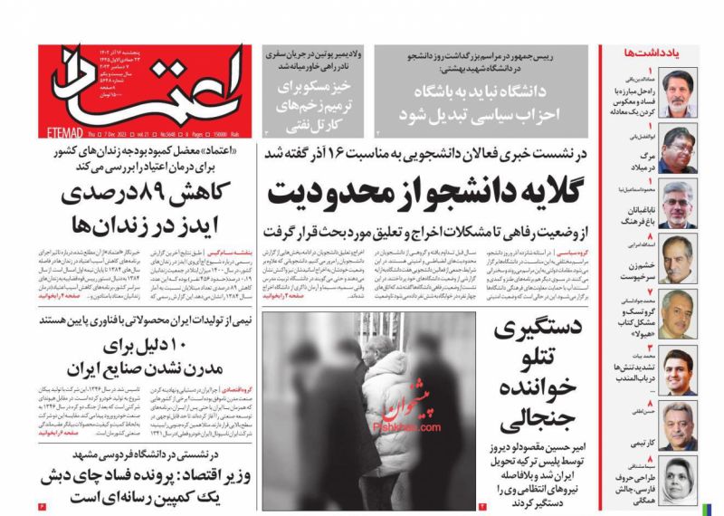 کد: 274929 | 18 آذر 1402 ساعت 06:49 صفحه نخست روزنامههای امروز شنبه 18 آذر 1402 صفحه نخست روزنامههای امروز شنبه 18 آذر 1402 روزنامه های سراسری مطبوعات کشور روزنامه اشتراک گذاری گزارش خطا × اشتراک گذاری مطلب: صفحه نخست روزنامههای امروز شنبه 18 آذر 1402 فیسبوک اینستاگرام تلگرام ایکس (توییتر) ایتا بله روبیکا × گزارش خطا برای گزارش خطا با پست الکترونیکی: ruydadiran[at]gmail.com در ارتباط باشید
