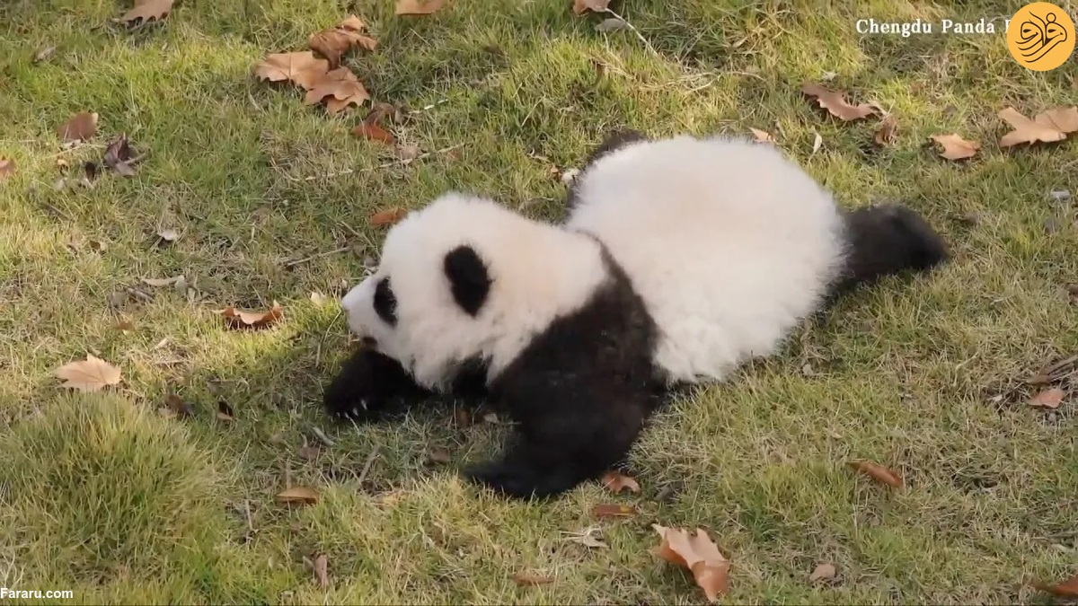 یک توله پاندای شایان ستایش در پایگاه تحقیقاتی پرورش پانداهای غول پیکر چنگدو در استان سیچوان در جنوب غربی چین در حال یادگیری خزیدن است. خرس کوچولو که اوایل امسال به دنیا آمد، در حال خزیدن ذره ذره و چهار دستوپا رفتن روی چمنها فیلمبرداری شد.
