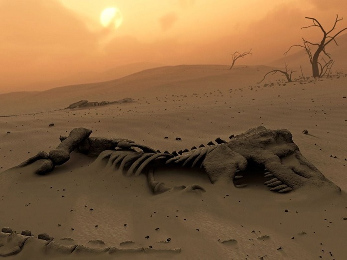 ۶۶ میلیون سال پیش، پس از برخورد یک شهاب آسمانی به زمین، گرد و غبار اطراف سیاره به حرکت درآمد