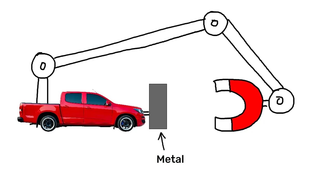 بخش کلیدی در اینجا یک نیروی خارجی است. آهنربا، با وجود آویزان شدن در جلوی ماشین مانند هویج در مقابل حیوان، همچنان بخشی از همان سیستم ماشین است که توسط یک میله و یا طناب به آن متصل شده است. آنها هیچ نیرویی به هیچ جسم خارجی اعمال نمیکنند، فقط به یکدیگر جذب میشوند و خنثی میشوند، و بنابراین مانند ماشین شما ثابت میمانند.