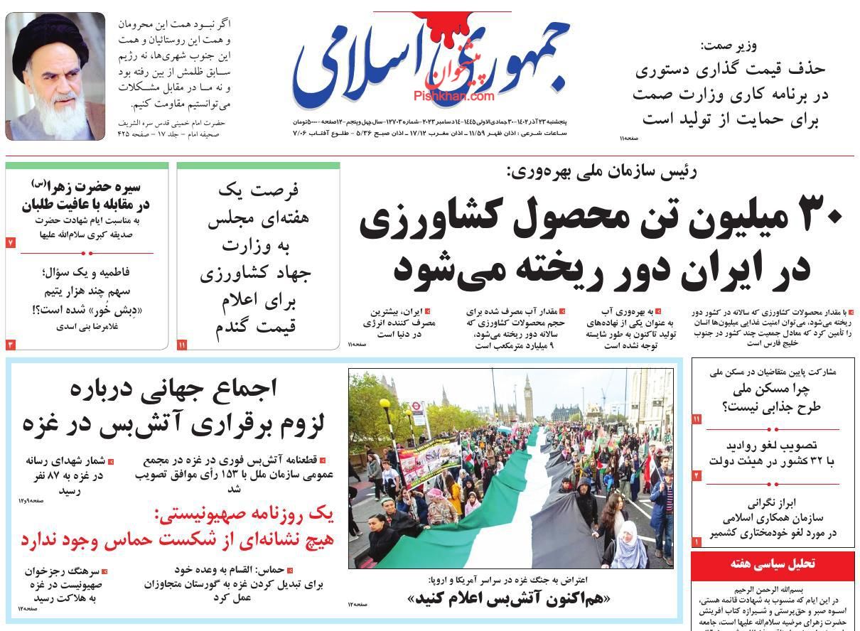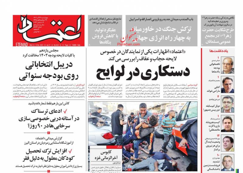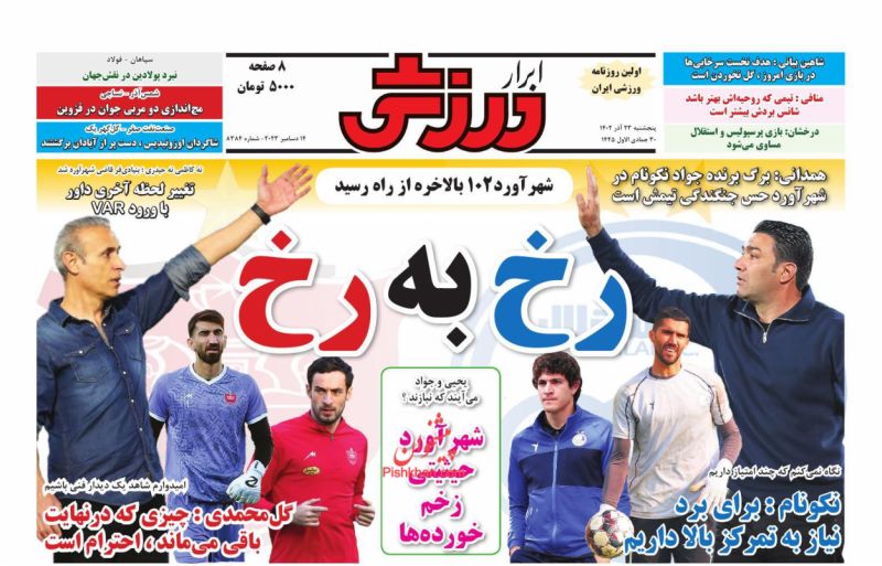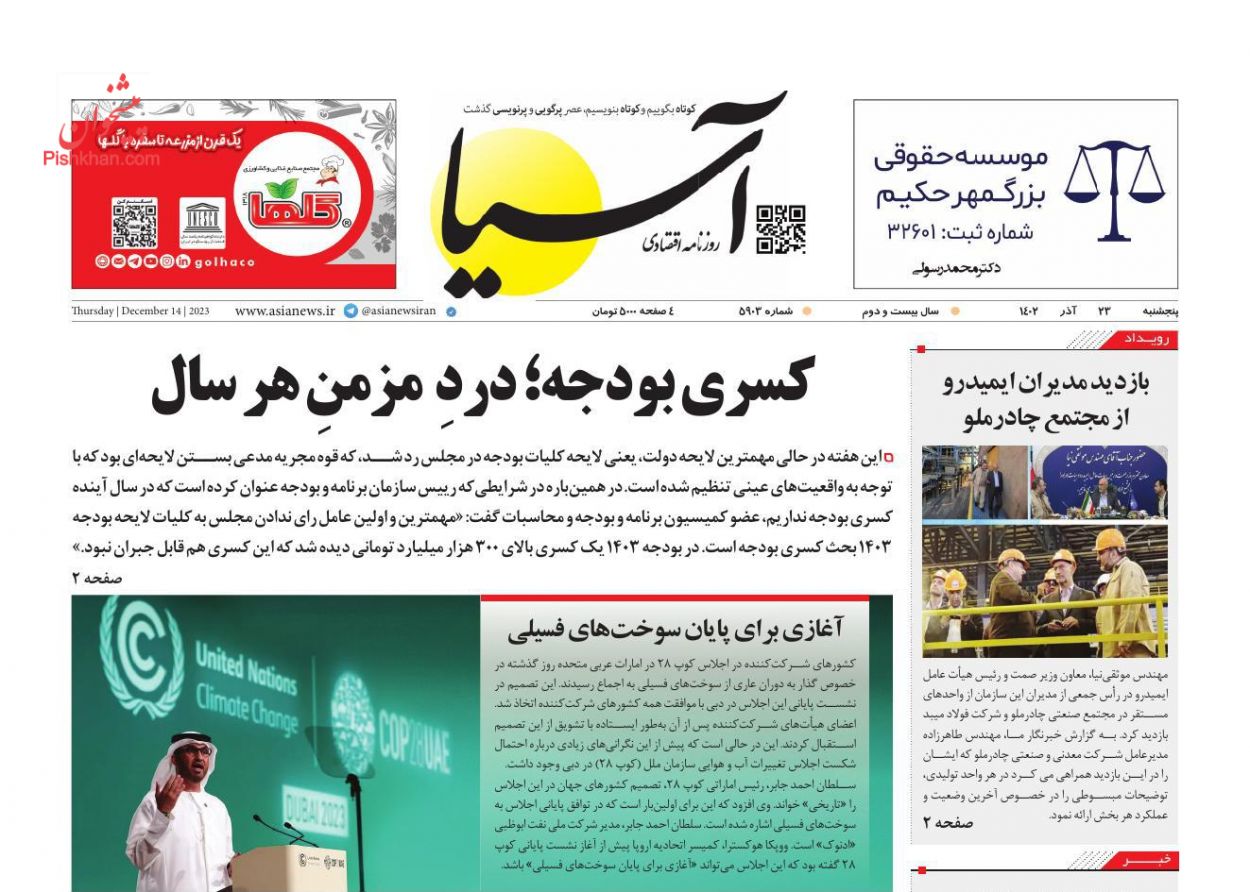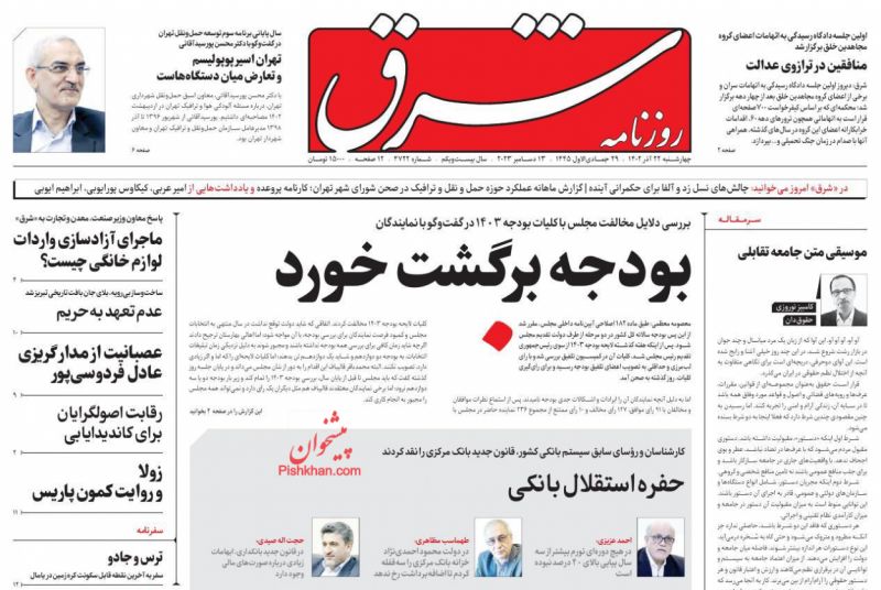 صفحه نخست روزنامه‌های امروز پنجشنبه 23 آذر 1402