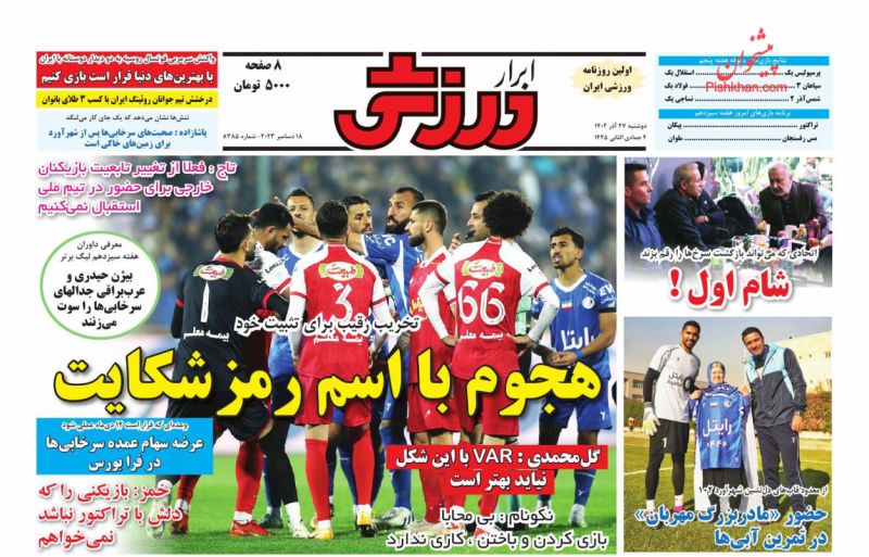 کد: 278352 | 27 آذر 1402 ساعت 06:50 صفحه نخست روزنامههای امروز دوشنبه 27 آذر 1402 صفحه نخست روزنامههای امروز دوشنبه 27 آذر 1402 روزنامه های سراسری مطبوعات کشور روزنامه اشتراک گذاری گزارش خطا × اشتراک گذاری مطلب: صفحه نخست روزنامههای امروز دوشنبه 27 آذر 1402 فیسبوک اینستاگرام تلگرام ایکس (توییتر) ایتا بله روبیکا × گزارش خطا برای گزارش خطا با پست الکترونیکی: ruydadiran[at]gmail.com در ارتباط باشید