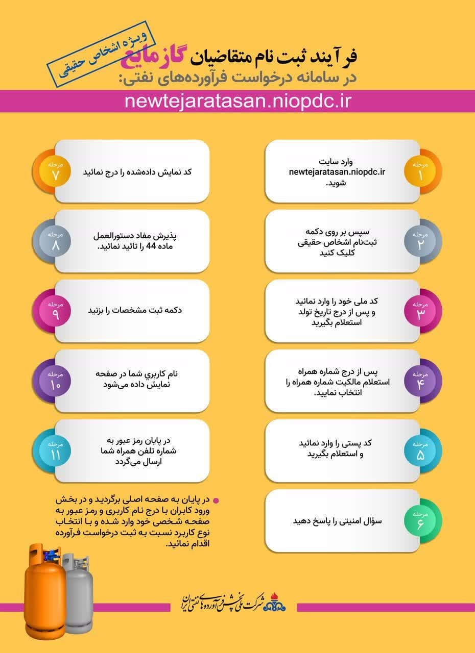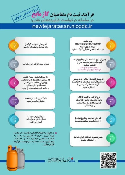 فرآیند ثبت نام متقاضیان گاز مایع در سامانه درخواست فراورده های نفتی: