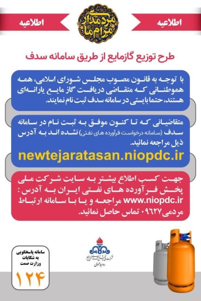 با توجه به قانون مصوب مجلس شورای اسلامی، همه هموطنانی که متقاضی دریافت گاز مایع یارانه ای هستند، حتما بایستی در سامانه سدف ثبت نام نمایند.