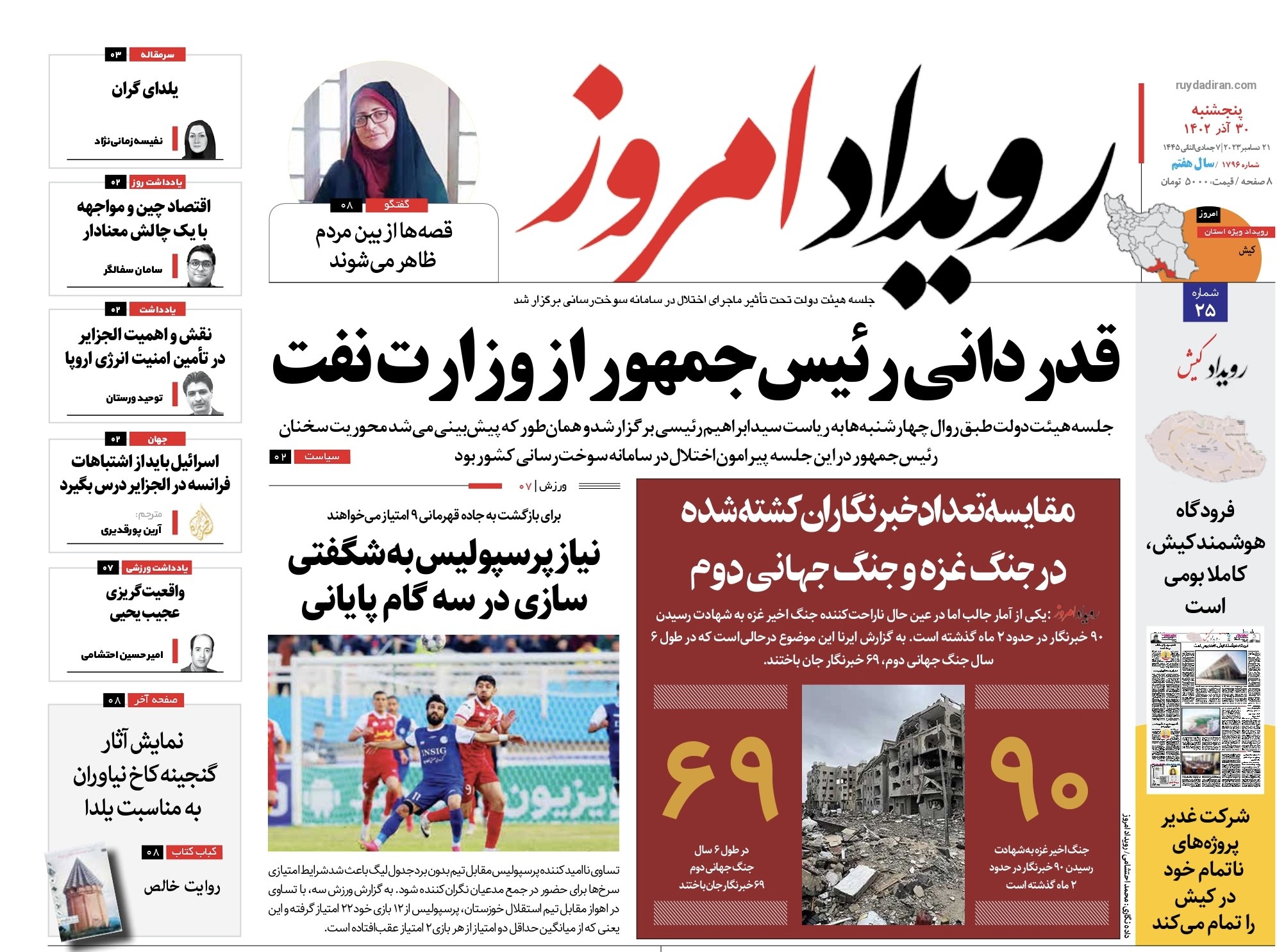 روزنامه رویداد امروز پنج‌شنبه ۳۰ آذر ۱۴۰۲