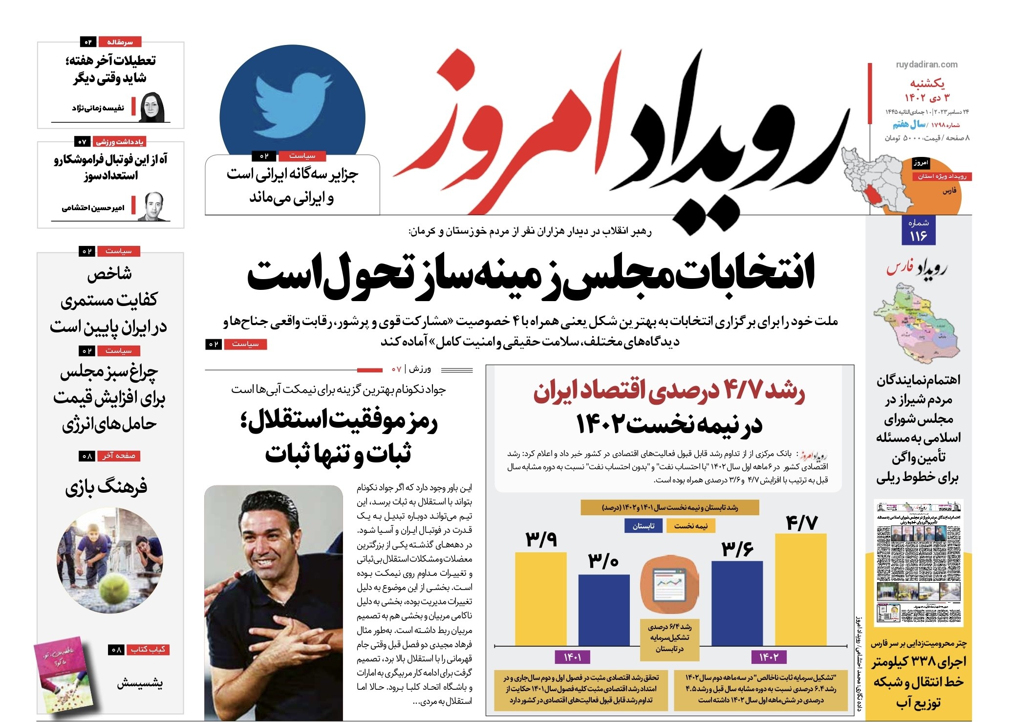 کد: 281051 | 03 دی 1402 ساعت 02:32 روزنامه رویداد امروز یکشنبه ۳دی ۱۴۰۲ اشتراک گذاری گزارش خطا × اشتراک گذاری مطلب: روزنامه رویداد امروز یکشنبه ۳دی ۱۴۰۲ فیسبوک اینستاگرام تلگرام ایکس (توییتر) ایتا بله روبیکا × گزارش خطا برای گزارش خطا با پست الکترونیکی: ruydadiran[at]gmail.com در ارتباط باشید