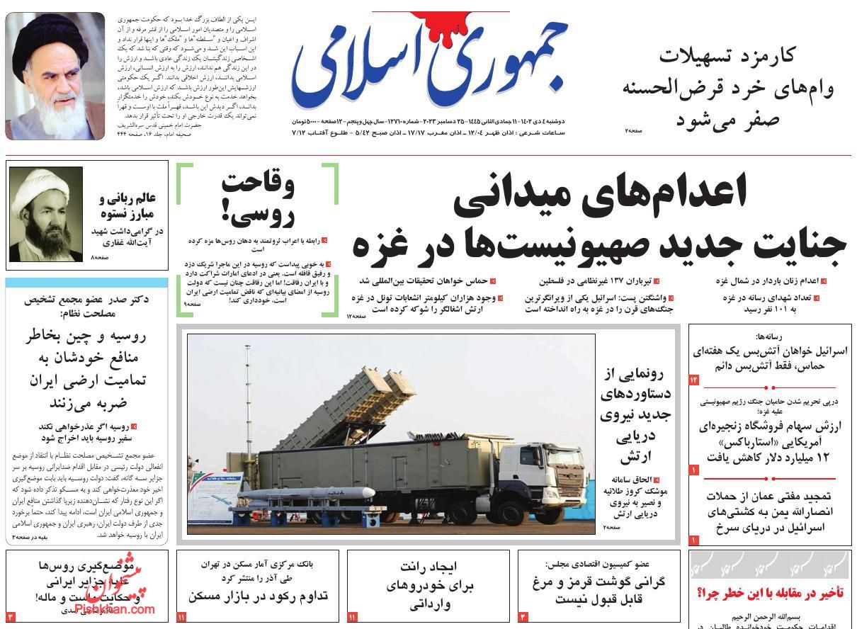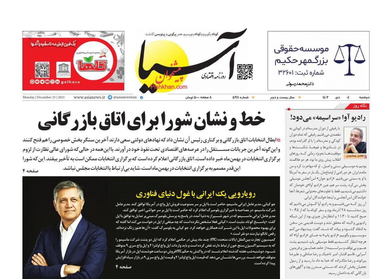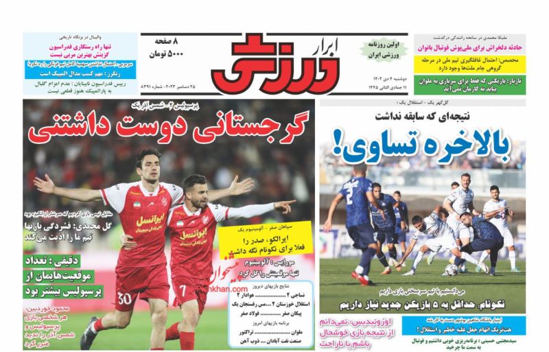 صفحه نخست روزنامه‌های امروز دوشنبه4 دی 1402
