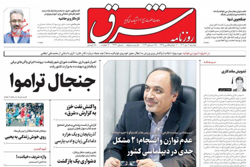 کد: 281466 | 05 دی 1402 ساعت 06:44 صفحه نخست روزنامههای امروز سه شنبه5 دی 1402 صفحه نخست روزنامههای امروز سه شنبه5 دی 1402 روزنامه های سراسری مطبوعات کشور روزنامه اشتراک گذاری گزارش خطا × اشتراک گذاری مطلب: صفحه نخست روزنامههای امروز سه شنبه5 دی 1402 فیسبوک اینستاگرام تلگرام ایکس (توییتر) ایتا بله روبیکا × گزارش خطا برای گزارش خطا با پست الکترونیکی: ruydadiran[at]gmail.com در ارتباط باشید