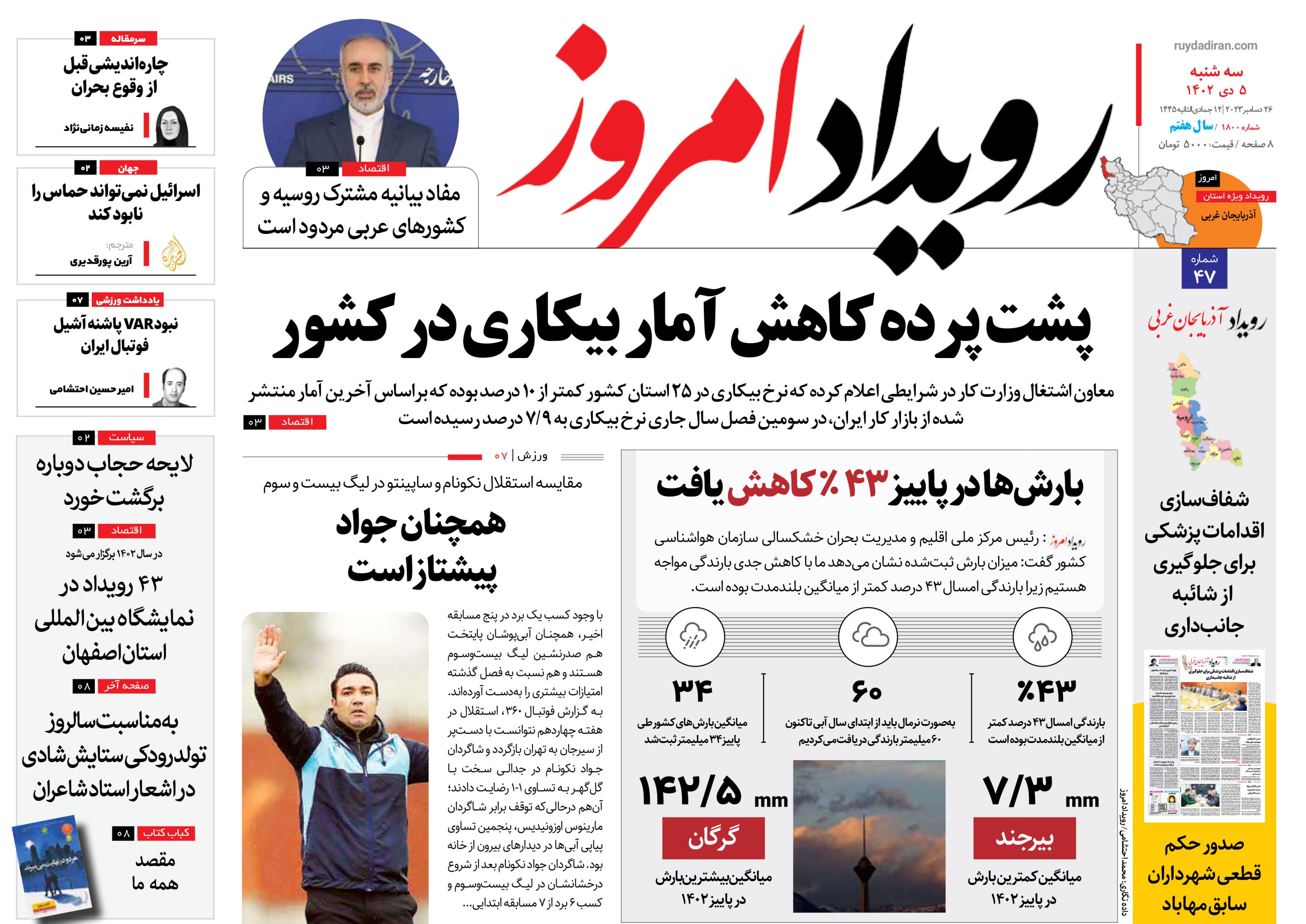 کد: 281873 | 05 دی 1402 ساعت 03:10 روزنامه رویداد امروز سه شنبه ۵ دی ۱۴۰۲ اشتراک گذاری گزارش خطا × اشتراک گذاری مطلب: روزنامه رویداد امروز سه شنبه ۵ دی ۱۴۰۲ فیسبوک اینستاگرام تلگرام ایکس (توییتر) ایتا بله روبیکا × گزارش خطا برای گزارش خطا با پست الکترونیکی: ruydadiran[at]gmail.com در ارتباط باشید