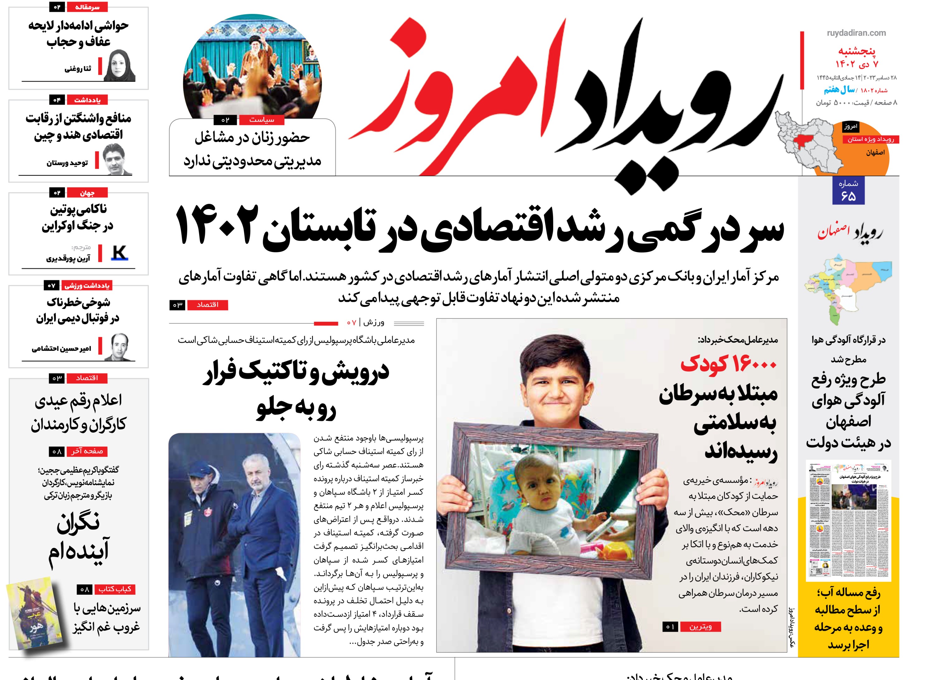 روزنامه رویداد امروز پنج شنبه ۷ دی ۱۴۰۲