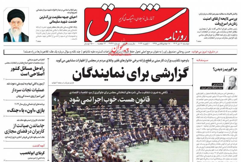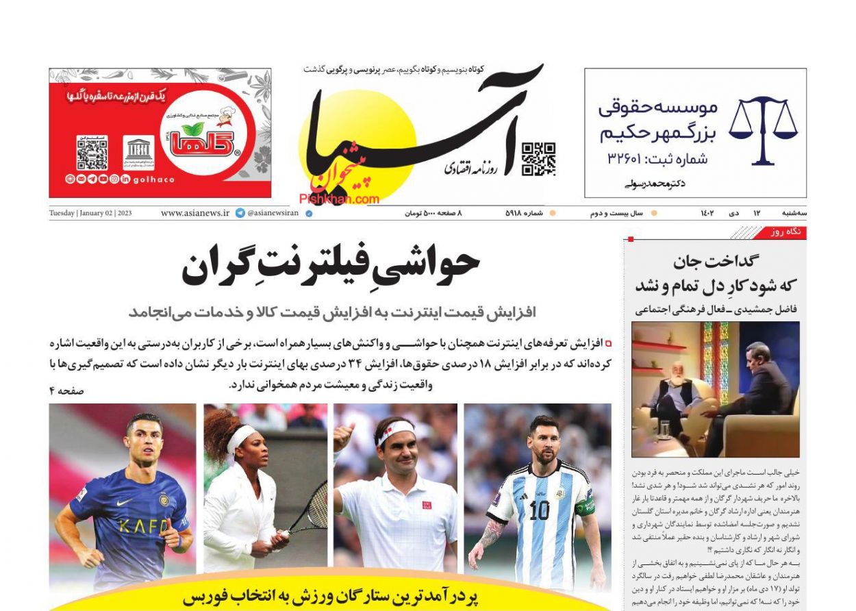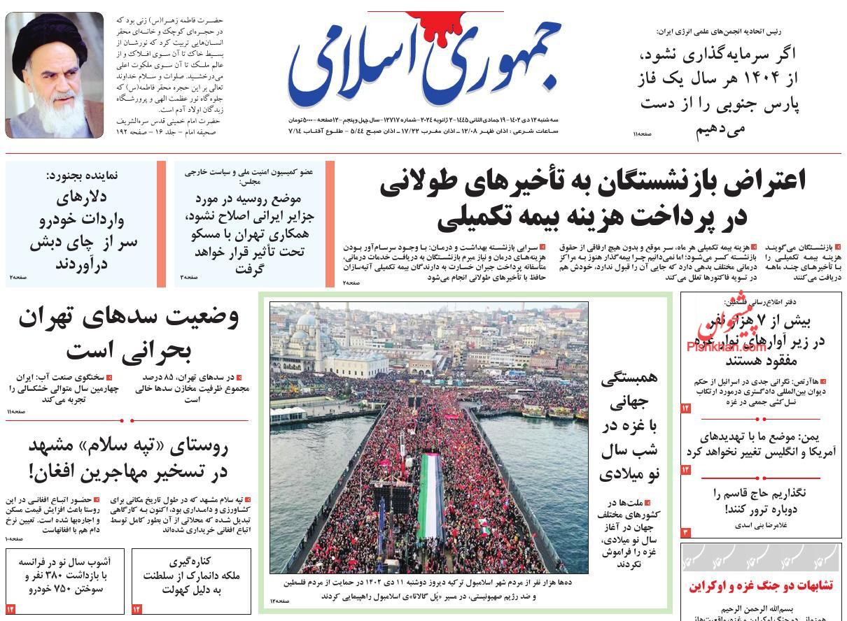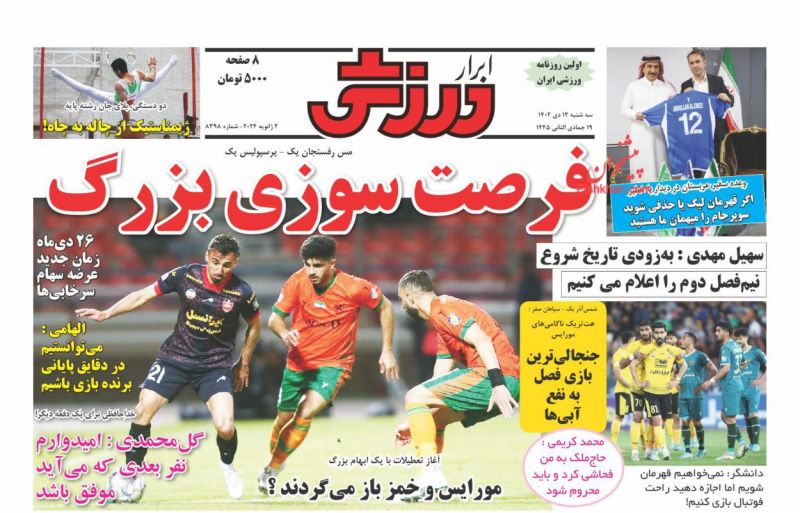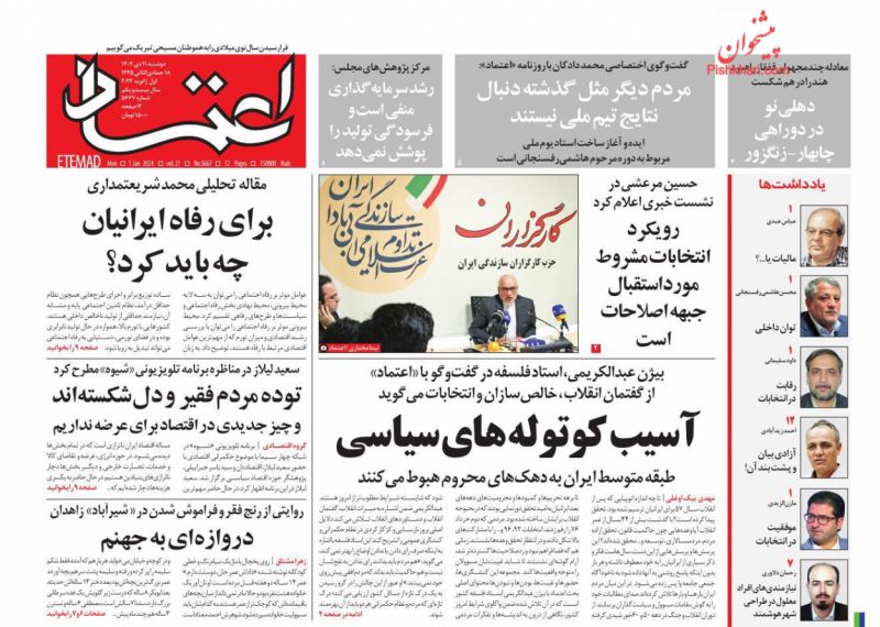 صفحه نخست روزنامه‌های امروز سه شنبه 12 دی 1402