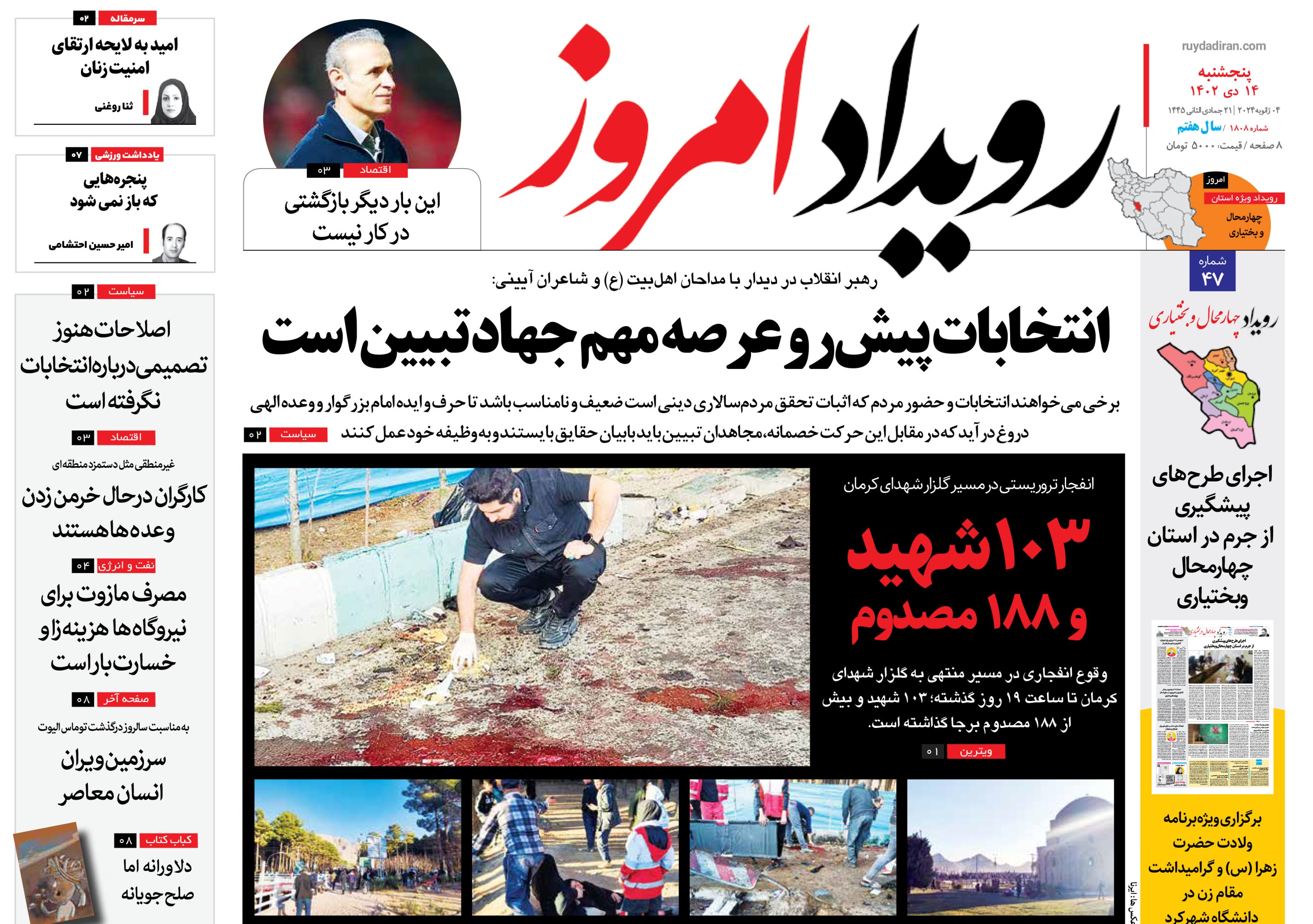 کد: 285097 | 14 دی 1402 ساعت 02:19 روزنامه رویداد امروز پنج شنبه ۱۴ دی ۱۴۰۲ اشتراک گذاری گزارش خطا × اشتراک گذاری مطلب: روزنامه رویداد امروز پنج شنبه ۱۴ دی ۱۴۰۲ فیسبوک اینستاگرام تلگرام ایکس (توییتر) ایتا بله روبیکا × گزارش خطا برای گزارش خطا با پست الکترونیکی: ruydadiran[at]gmail.com در ارتباط باشید
