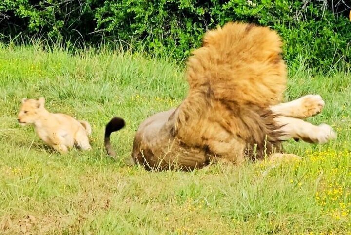 دم شیر، نه از سر بازیگوشی، بلکه به دلیل دور کردن مگسها به جلو و عقب میچرخید. با این حال، برای توله ها، این دم متحرک یک بازی عالی به نظر میرسید. آنها مدام به سمت آن میرفتند، هجوم میآوردند و میکشیدند و کاملاً روی حرکت آن متمرکز بودند. منبع: فرارو