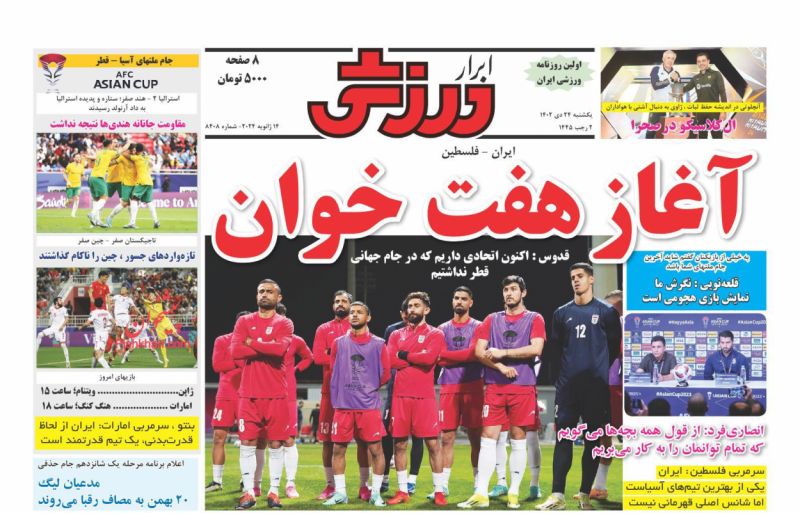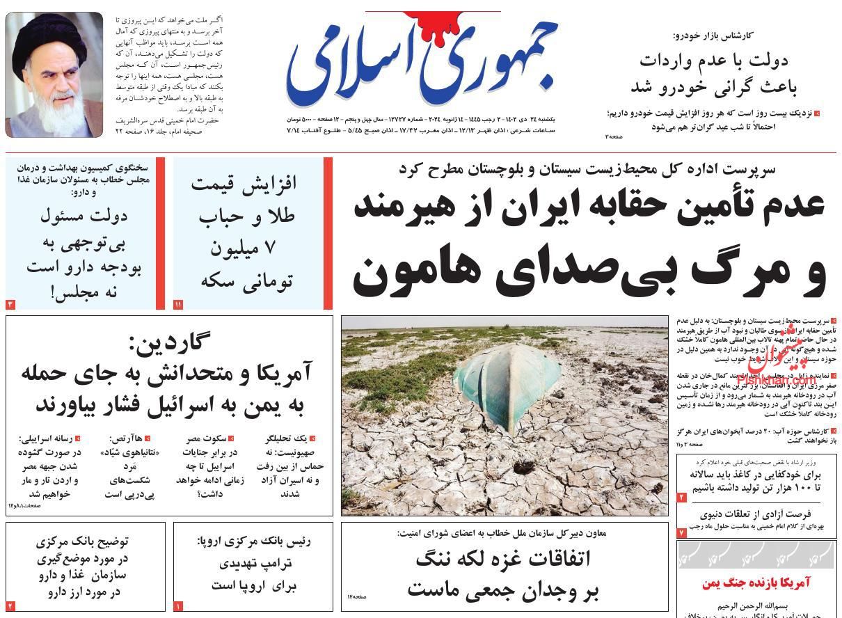 صفحه نخست روزنامه‌های امروز یکشنبه 24 دی 1402