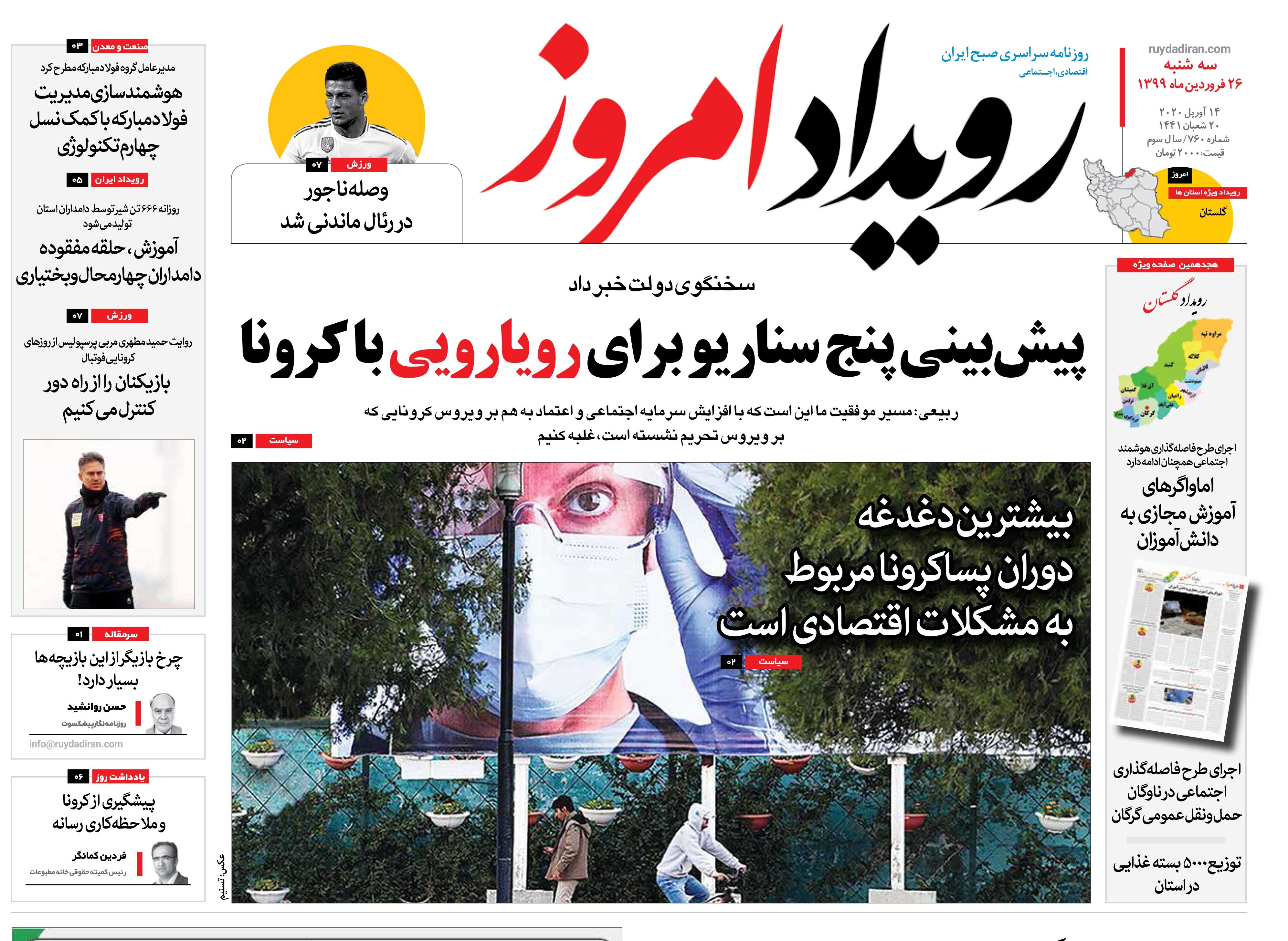 روزنامه رویداد امروز سه شنبه ۲۶ فروردین  ۱۳۹۹