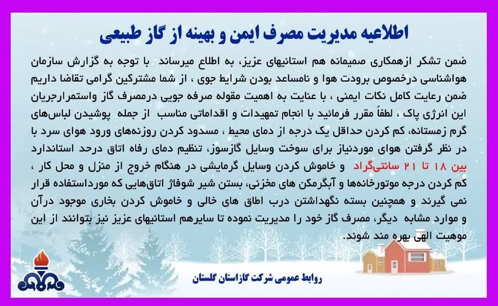اطلاعیه مدیریت مصرف ایمن و بهینه از گاز طبیعی