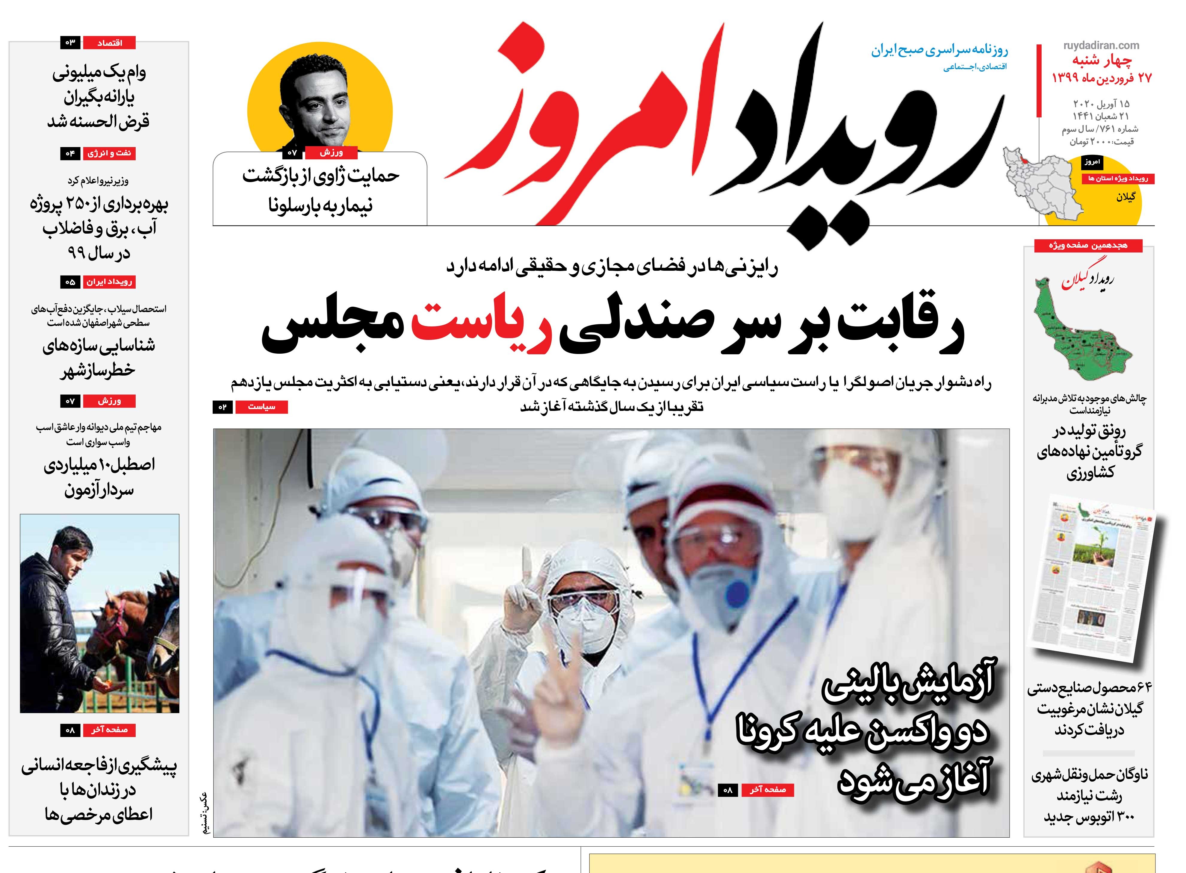 روزنامه رویداد امروز چهارشنبه ۲۷ فروردین ۱۳۹۹
