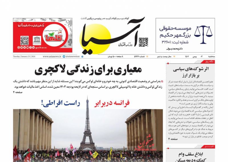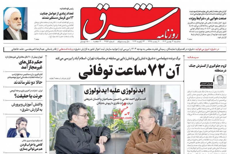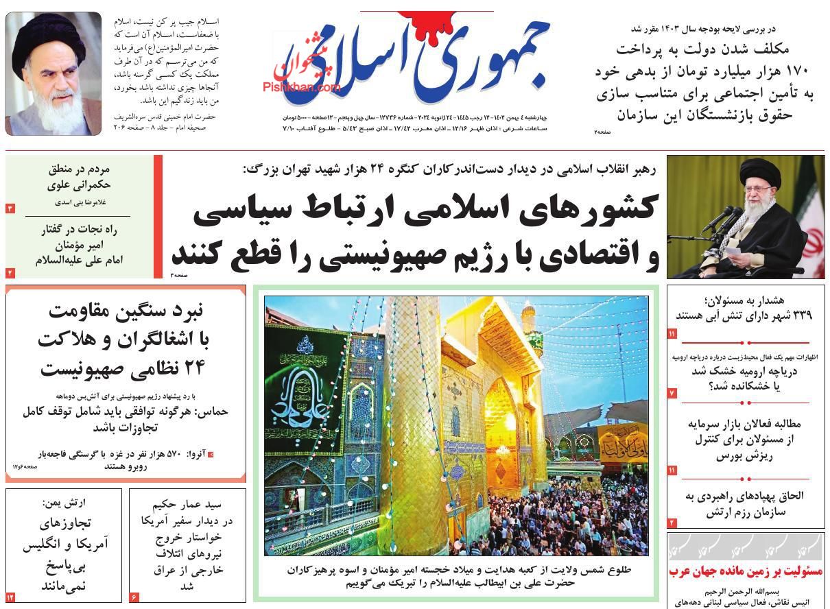 صفحه نخست روزنامه‌های امروز چهارشنبه 4 بهمن 1402