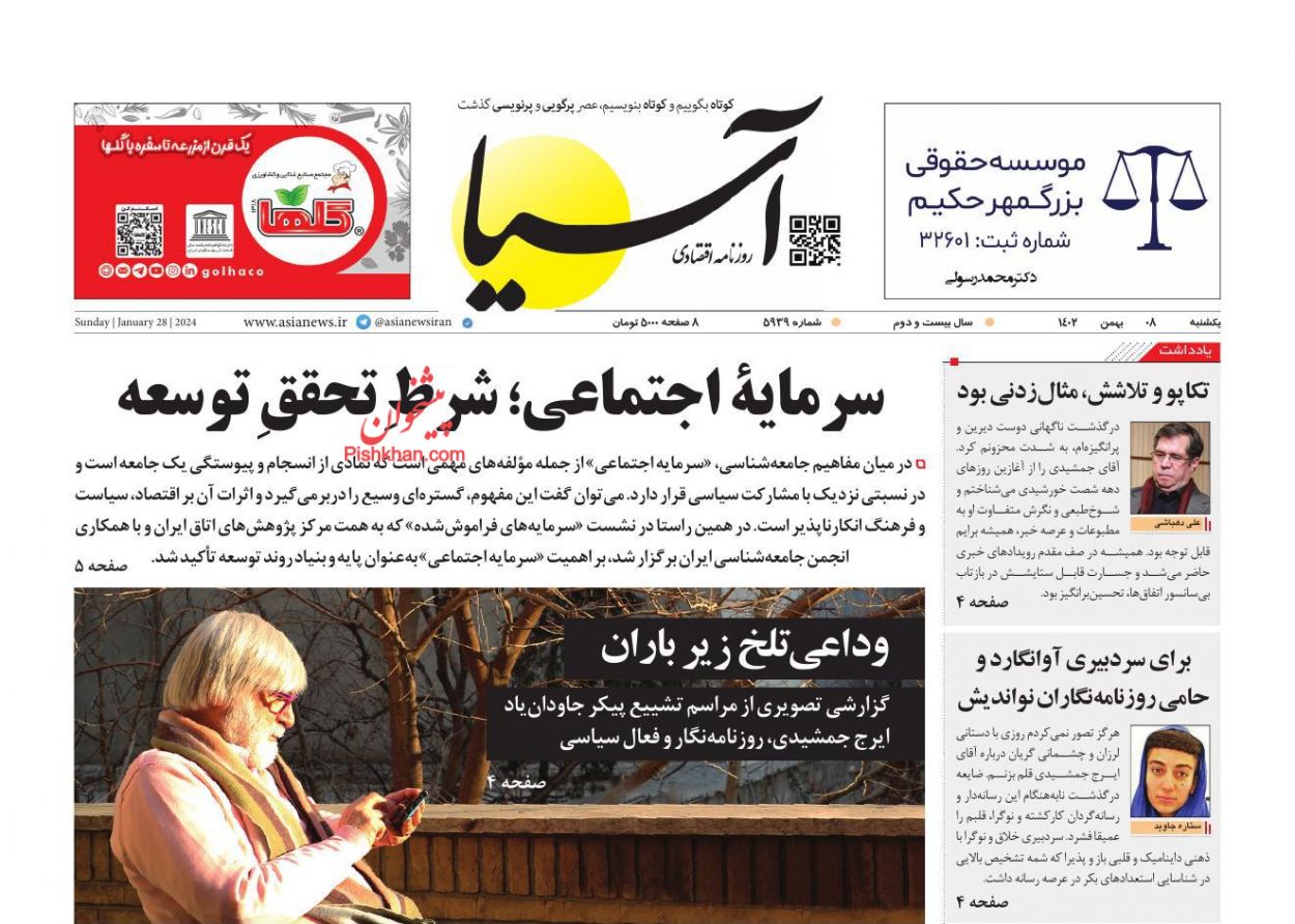 کد: 292542 | 08 بهمن 1402 ساعت 06:59 صفحه نخست روزنامههای امروز یکشنبه 8 بهمن 1402 صفحه نخست روزنامههای امروز یکشنبه 8 بهمن 1402 روزنامه های سراسری مطبوعات کشور روزنامه اشتراک گذاری گزارش خطا × اشتراک گذاری مطلب: صفحه نخست روزنامههای امروز یکشنبه 8 بهمن 1402 فیسبوک اینستاگرام تلگرام ایکس (توییتر) ایتا بله روبیکا × گزارش خطا برای گزارش خطا با پست الکترونیکی: ruydadiran[at]gmail.com در ارتباط باشید