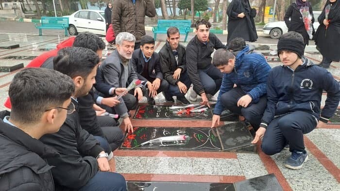 پیش از مراسم غبارروبی مزار شهدا، یک شاعره دانش‌آموز هم قطعه‌ای که سروده بود را قرائت کرد و سپس حاضران در این مراسم در زیر بارش باران، اقدام به غبارروبی و عطر افشانی مزار شهدا کردند.