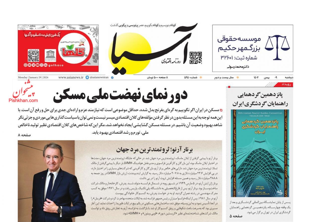 صفحه نخست روزنامه‌های امروز دوشنبه 9 بهمن 1402
