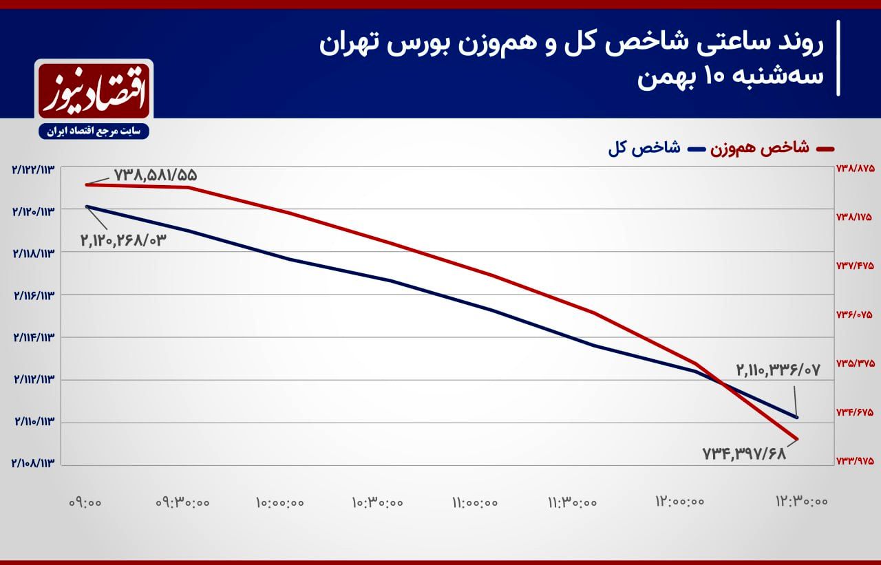 به گزارش اقتصادنیوز ، بازار سهام در روند معاملات روز معاملاتی گذشته شاهد کاهش تراز شاخص کل هموزن و افت تراز شاخص کل بورس تهران بود. در ابتدای معاملات روز سهشنبه شاخصهای سهامی شاهد روند نزولی قیمتها و قرمز پوشی 73 درصد از نقشه بازار سهام بودند. بورس تهران دیروز با تشدید روند خروجی جریان پول حقیقی همراه بود.
