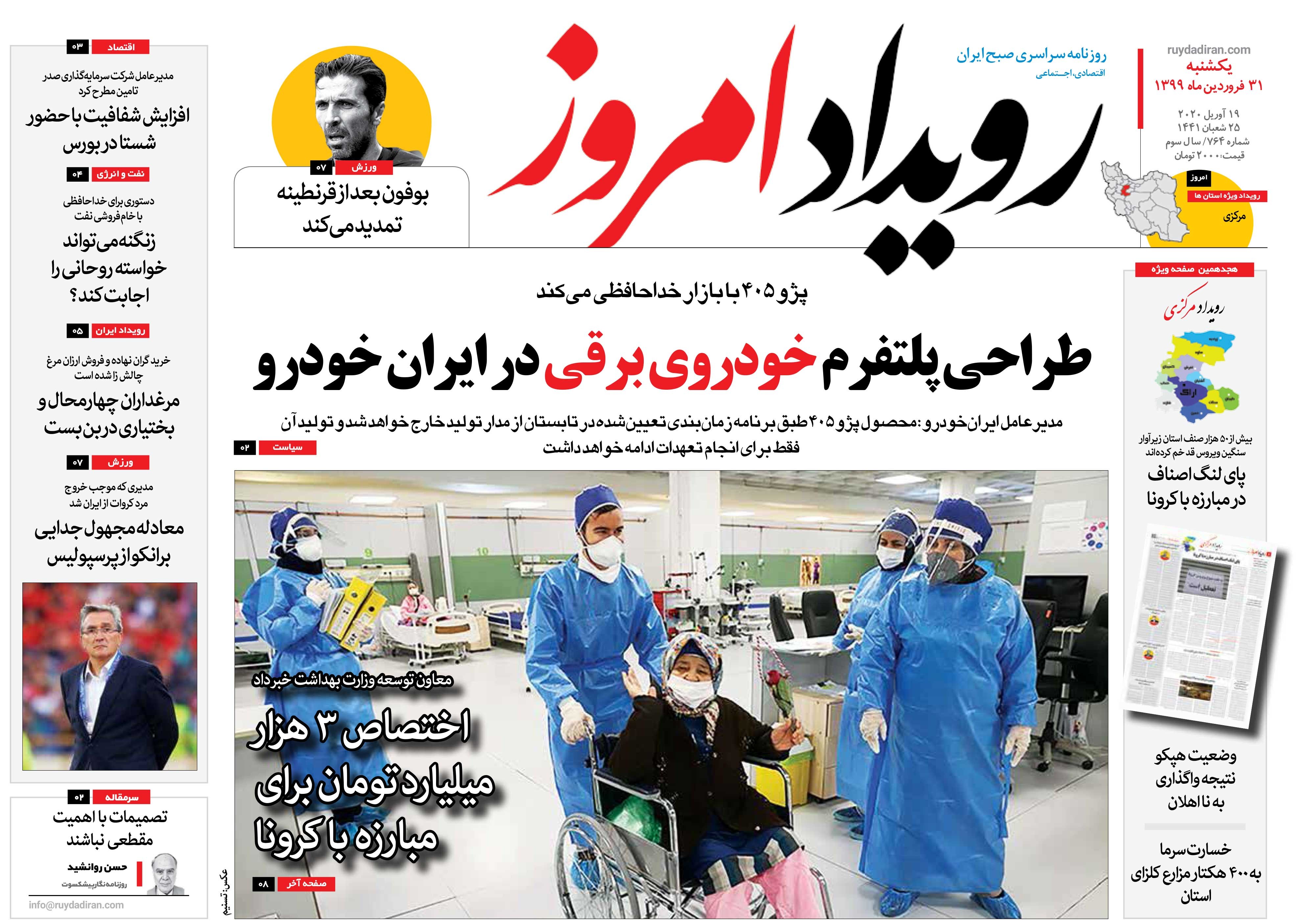روزنامه رویداد امروز یکشنبه ۳۱ فروردین ۱۳۹۹