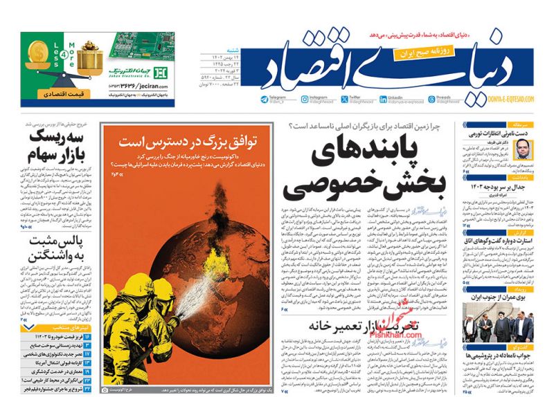کد: 295532 | 14 بهمن 1402 ساعت 06:45 صفحه نخست روزنامههای امروز شنبه 14 بهمن 1402 صفحه نخست روزنامههای امروز شنبه 14 بهمن 1402 روزنامه های سراسری مطبوعات کشور روزنامه اشتراک گذاری گزارش خطا × اشتراک گذاری مطلب: صفحه نخست روزنامههای امروز شنبه 14 بهمن 1402 فیسبوک اینستاگرام تلگرام ایکس (توییتر) ایتا بله روبیکا × گزارش خطا برای گزارش خطا با پست الکترونیکی: ruydadiran[at]gmail.com در ارتباط باشید