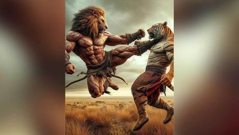 هوش مصنوعی در طراحی جالبی مبارزه شیر و ببر را به سبک رزمی کاران نشان داده که در ادامه خواهید دید.