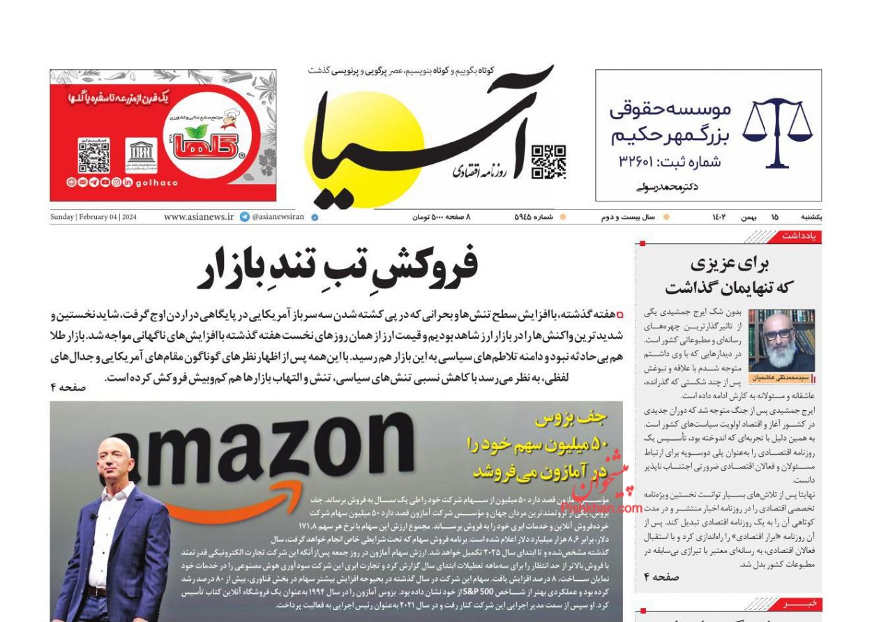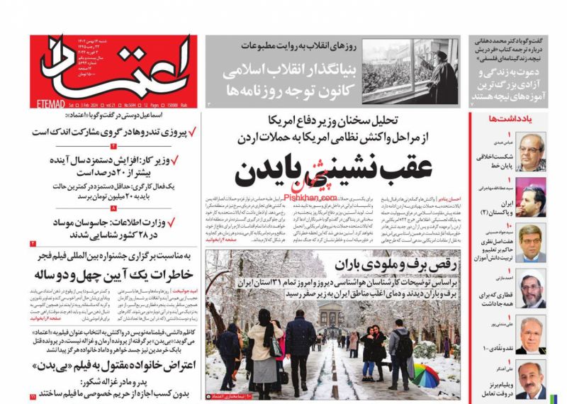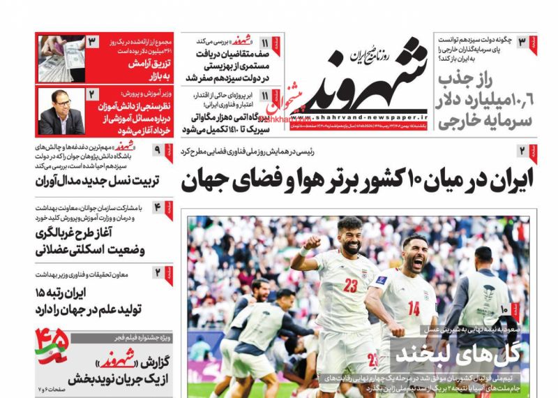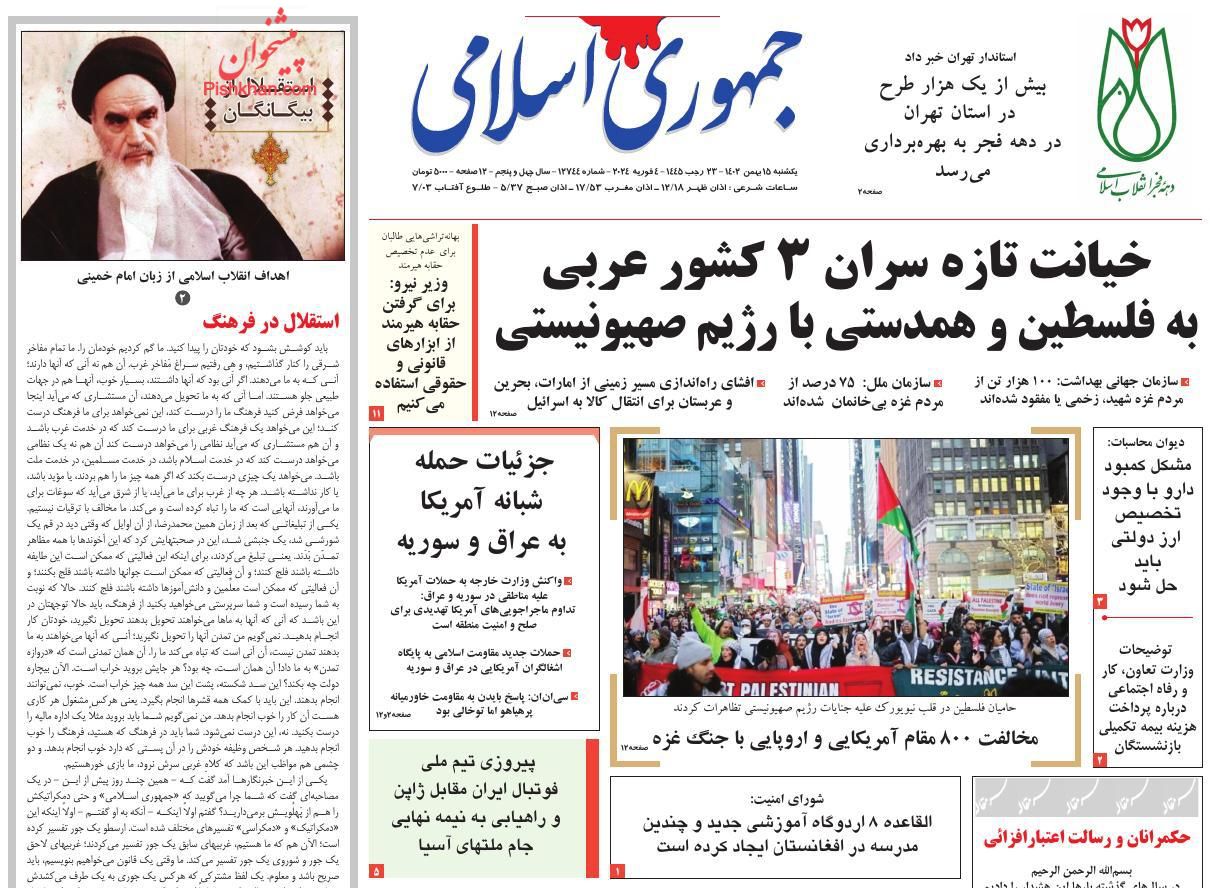 صفحه نخست روزنامه‌های امروز یکشنبه 15 بهمن 1402