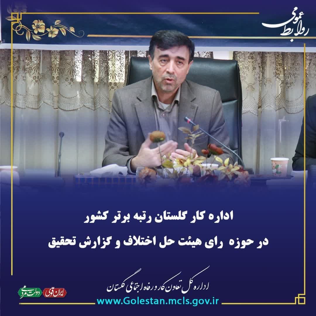 اداره کار گلستان رتبه برتر کشور در حوزه رای هیئت حل اختلاف و گزارش تحقیق