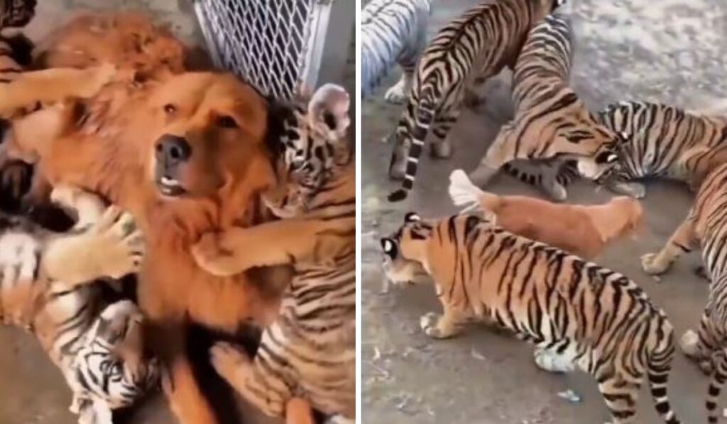 پس از اینکه مادر توله ببرهای تازه متولد شدهی یک باغ وحش از غذا دادن به بچه هایش امتناع کرد، توله ها گشنه و ضعیف شدند. صاحب باغ وحش تصمیم گرفت یک سگ گلدن رتریور که تازه مادر شده بود را برای شیر دادن به توله ها بیاورد و خوشبختانه این سگ مهربان توله ببرها را پذیرفت.