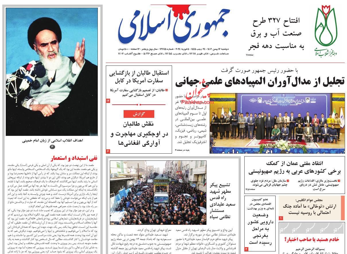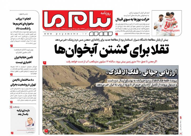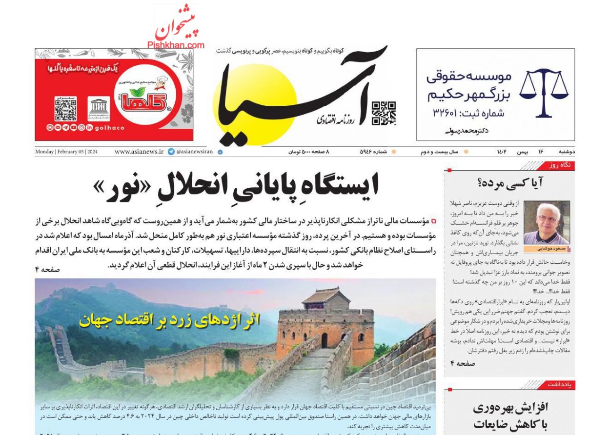 صفحه نخست روزنامه‌های امروز دوشنبه 16 بهمن 1402
